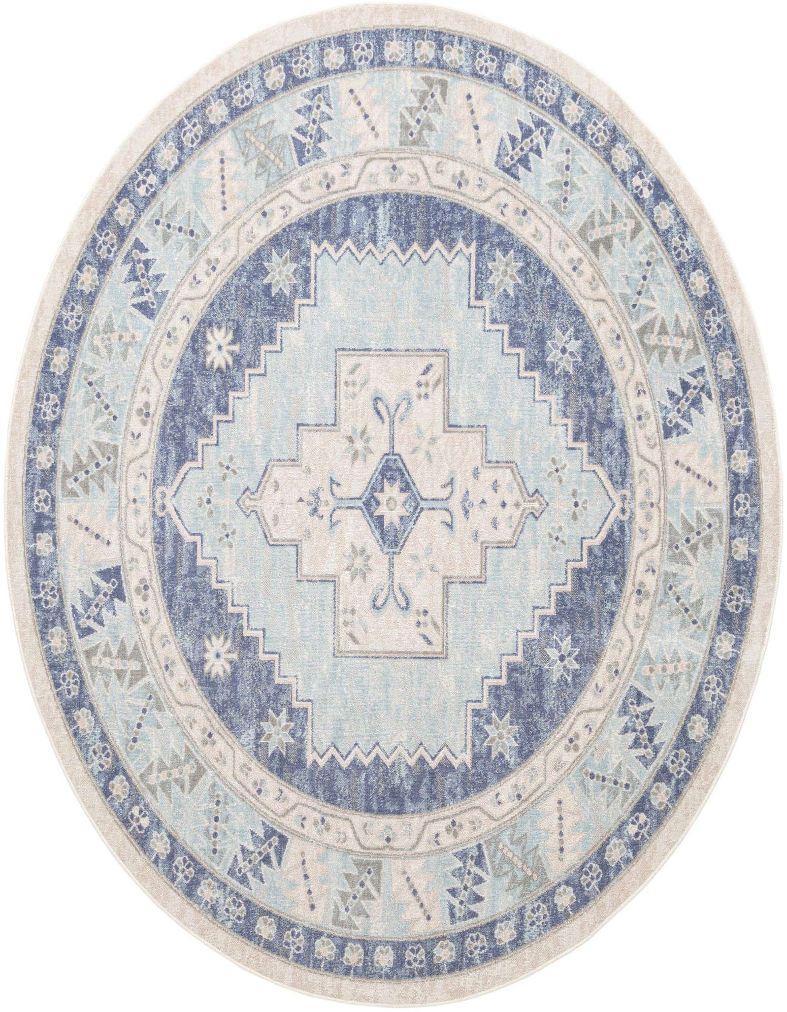 Whether anchoring a living room, adding sophistication to a dining space, or creating an inviting entrance in a foyer, this rug's versatile design harmonizes with a range of decors from modern minimalist to coastal-inspired themes. Its serene color scheme seamlessly integrates into spaces favoring a calm, relaxed atmosphere. The circular shape provides an elegant contrast to angular furniture, making it an intriguing focal point in any room.