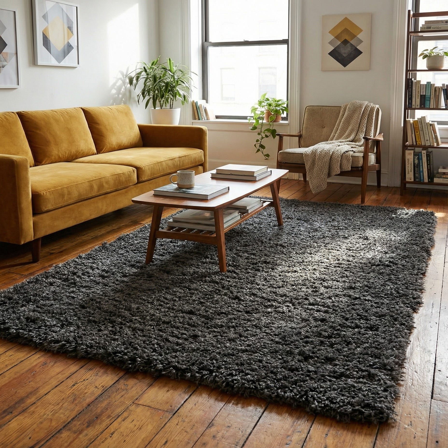 This rug works well where comfort and understated style are priorities — try it in a cozy living area layered beneath a low coffee table, beside the bed to create a cushioned landing, or in a reading nook with a simple armchair. Its neutral slate color pairs cleanly with warm woods, metal accents, or a monochrome palette, and it complements modern, transitional, or casual interiors that benefit from tactile, muted texture.