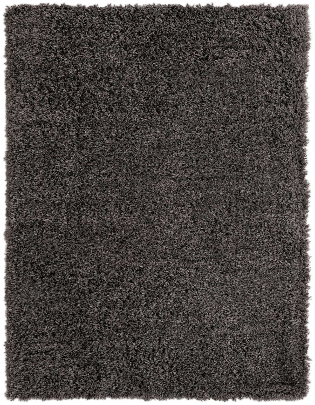 A deep, single-color slate field gives this shag rug a clean, modern look with subtle tonal depth from its long polyester fibers. The machine-made construction produces a dense, high-pile surface that invites you to sink your feet into it; the long tufts have a tactile, slightly tousled appearance that adds softness and visual warmth without a patterned overlay. The overall effect is uncomplicated and contemporary, letting the texture take center stage while the slate tone anchors a room with a cool, neutral presence.