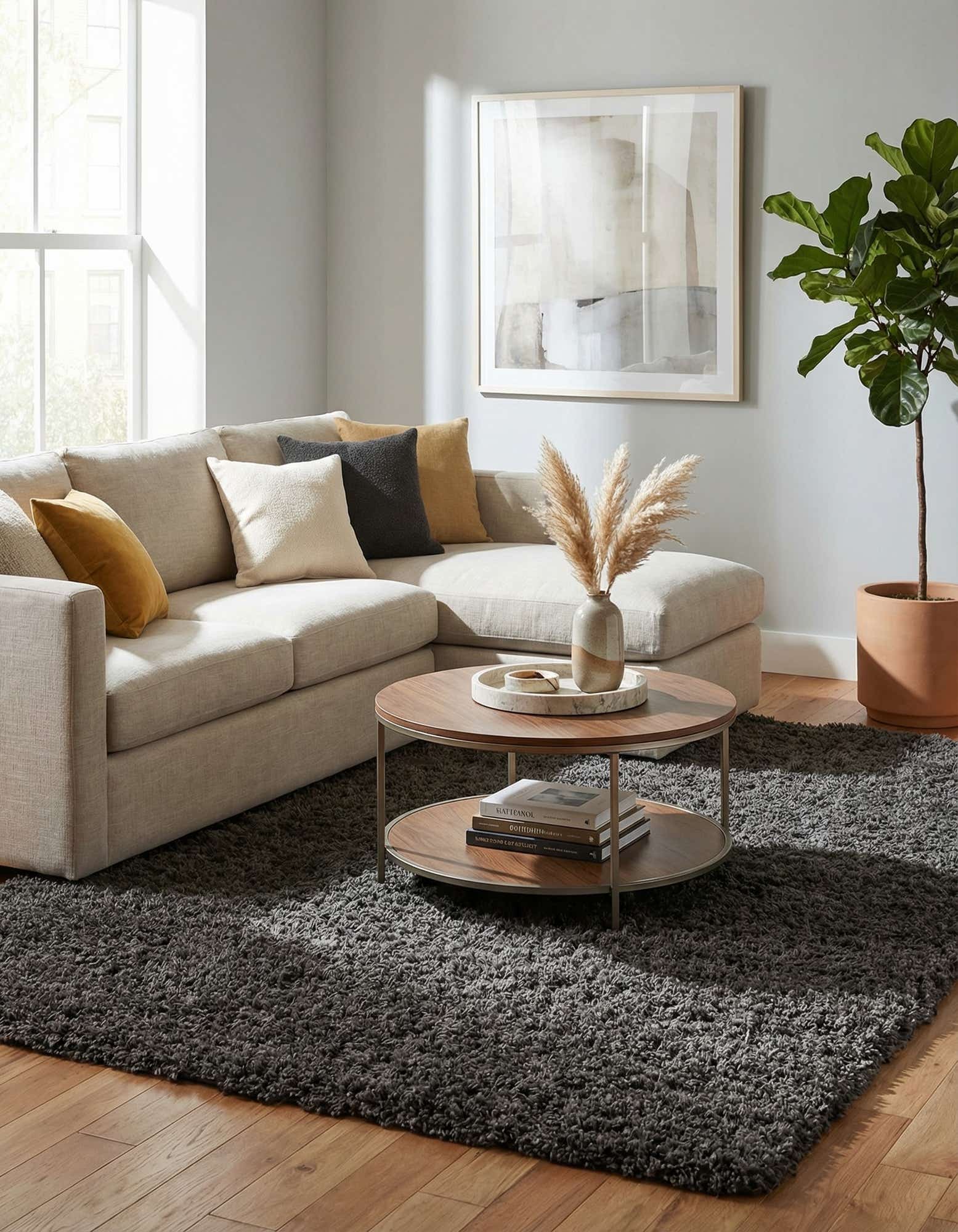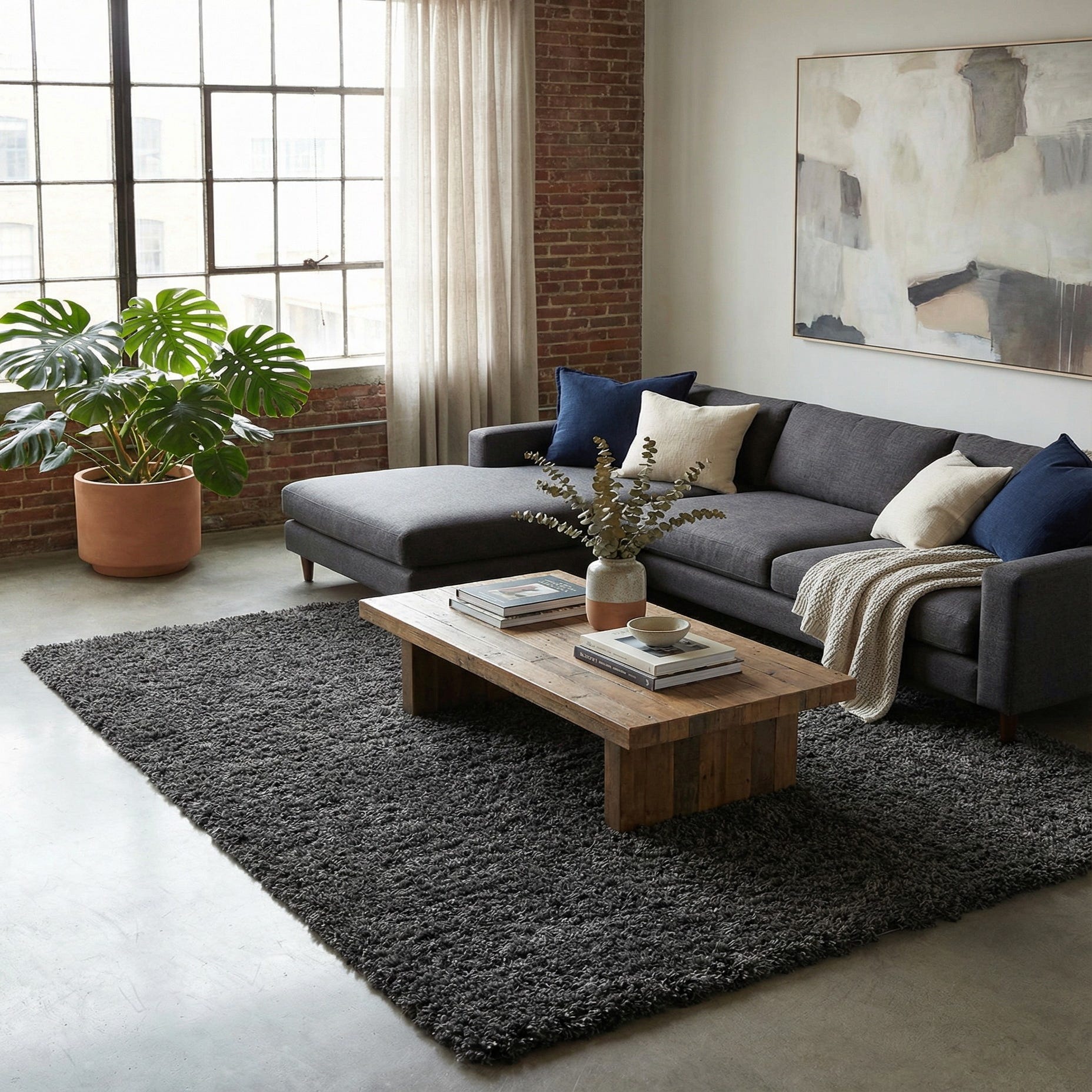 This rug works well beneath a low-profile sofa and coffee table to anchor a living room, layered in a bedroom to add warmth and comfort underfoot, or placed in a media or reading nook to soften acoustics and invite lingering. Slate pairs nicely with warm wood tones, cool grays and blues, and metal accents, making it suitable for contemporary, transitional, or industrial-inspired interiors that benefit from a neutral, tactile foundation.