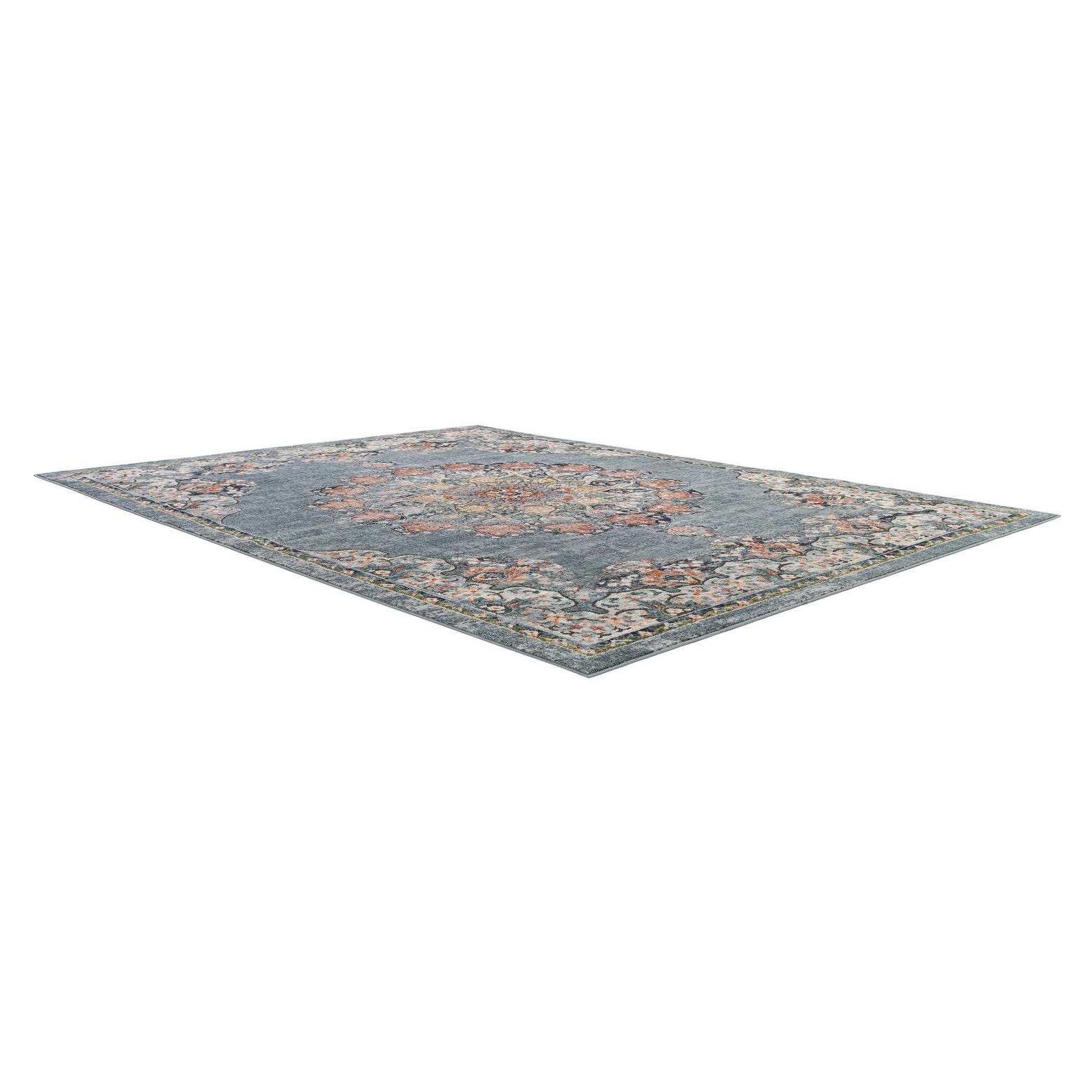A 9x12 rectangular Isabella collection rug in shades of blue with an intricate floral medallion pattern.