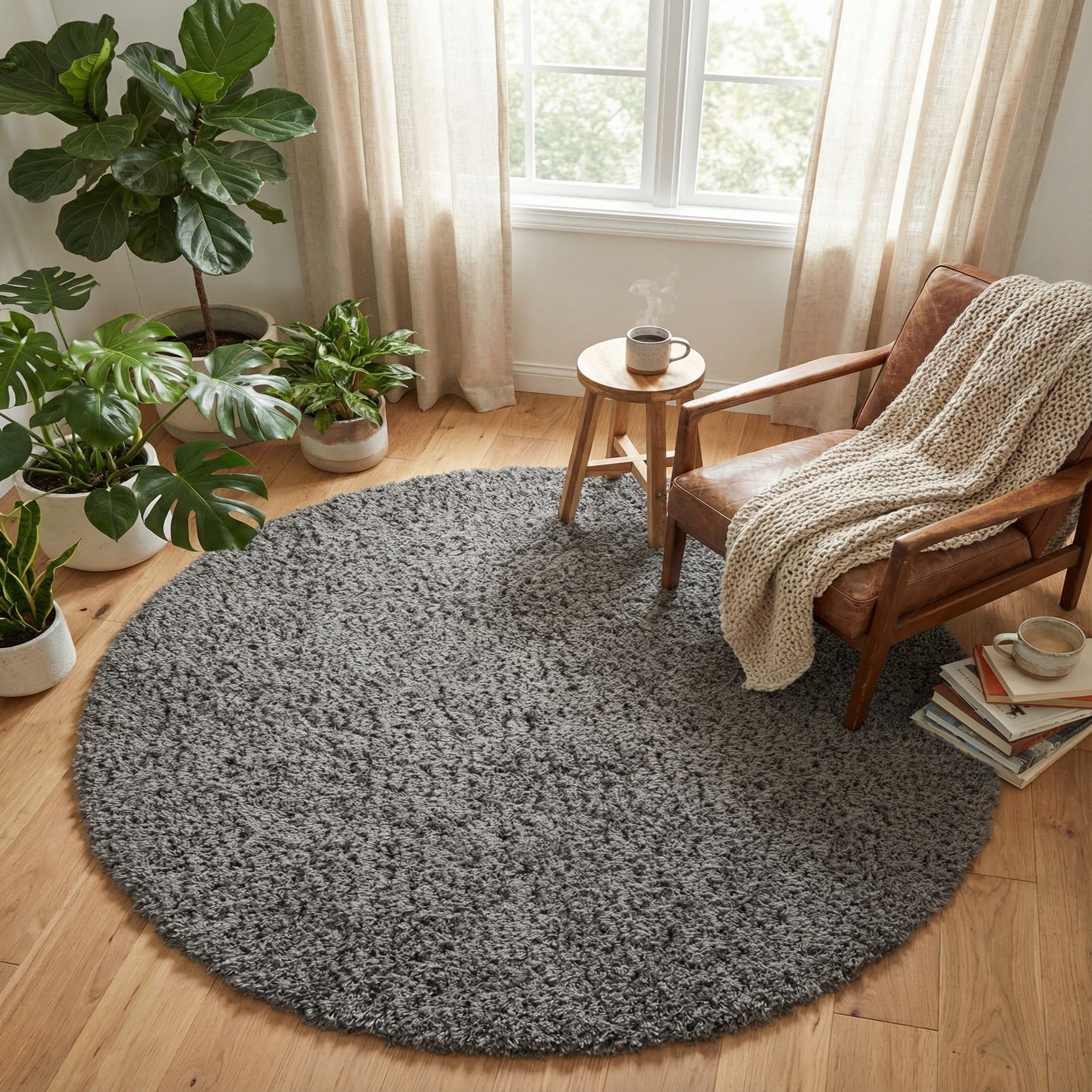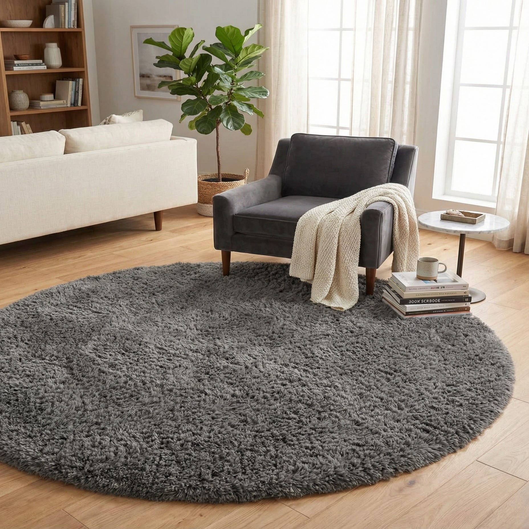 Soft and plush to the touch, the deep pile cushions bare feet and adds a comfortable layer to hard floors. Machine made of 100% polyester, it offers a velvety surface that complements modern and transitional interiors—place it beneath a seating group to define a living area, layer it in a bedroom or reading nook for added warmth, or center it under a round table to soften a dining spot. Pairs well with light-wash woods and matte metal finishes for a Scandinavian look, or with leather and textured linens for a contemporary contrast.