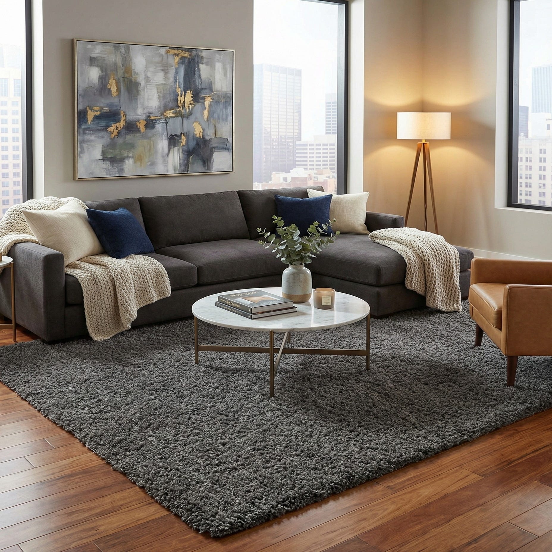 As a shed-free, stain-resistant floor covering, this rug is practical for high-traffic and family-friendly spaces. It would pair well with minimalist or contemporary decor, standing out in a modern living room or bedroom. However, its classic color and understated design also make it suitable for transitional interiors, where it can provide a soothing balance to more traditional elements.