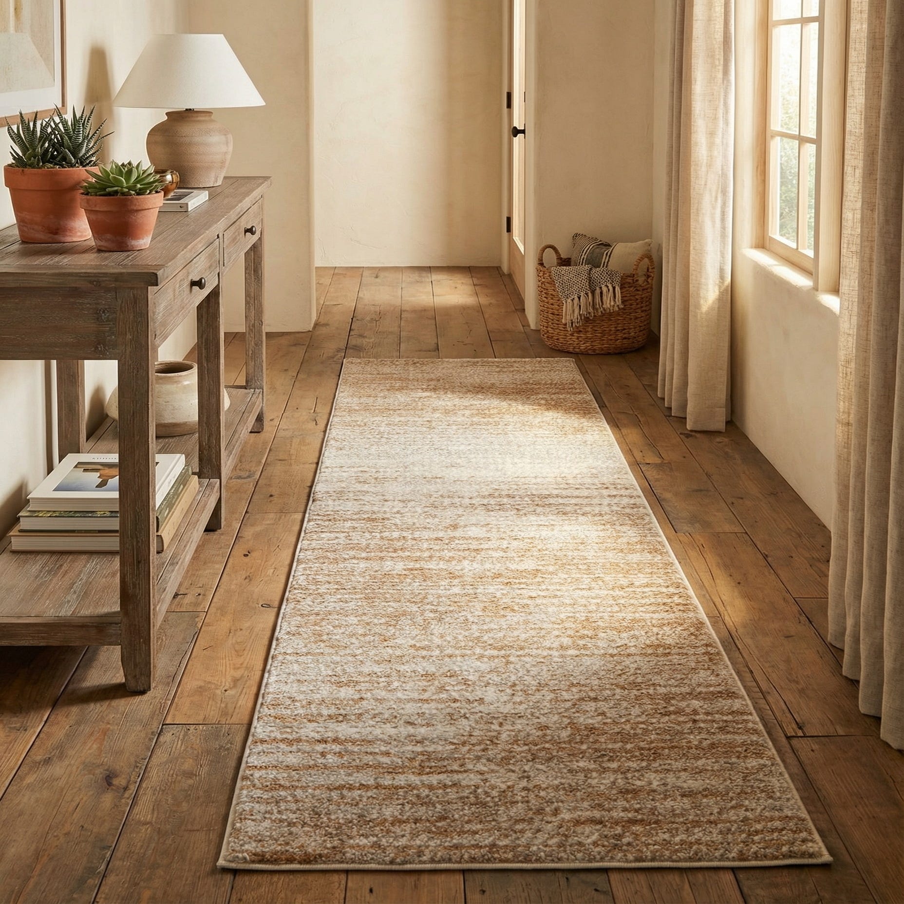Designed to bring quiet texture and warmth to narrow spaces, this runner works well in hallways, entryways, or alongside a bed. It pairs naturally with warm wood floors, pale linens, and clean-lined furniture, and complements design schemes from contemporary and Scandinavian to modern farmhouse and coastal. Use it to anchor a console table, create a soft pathway through a foyer, or layer it over a larger rug for added dimension.