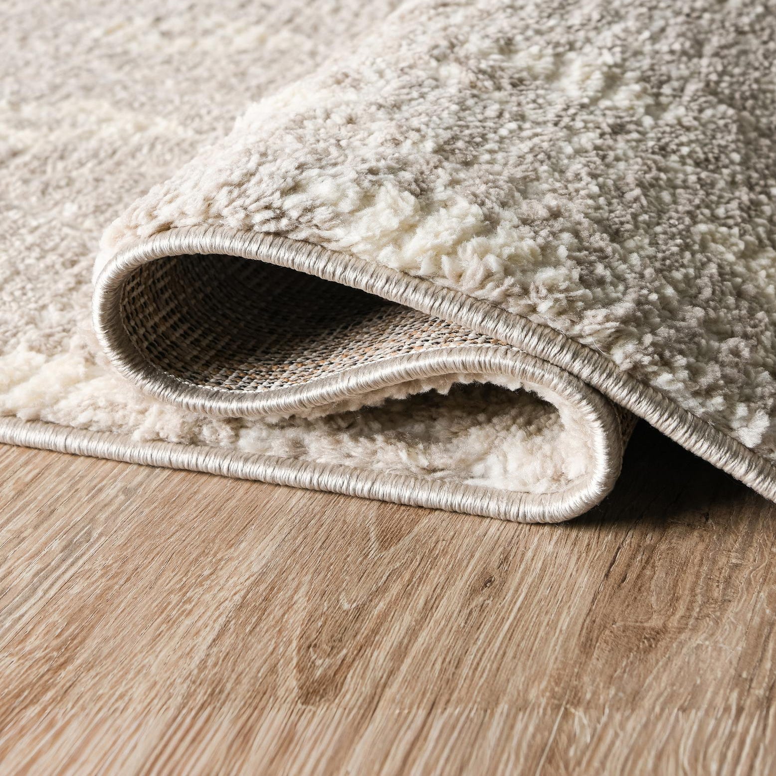 A 6 ft runner rug with a modern geometric pattern in ivory and cream tones, featuring a textured pile.