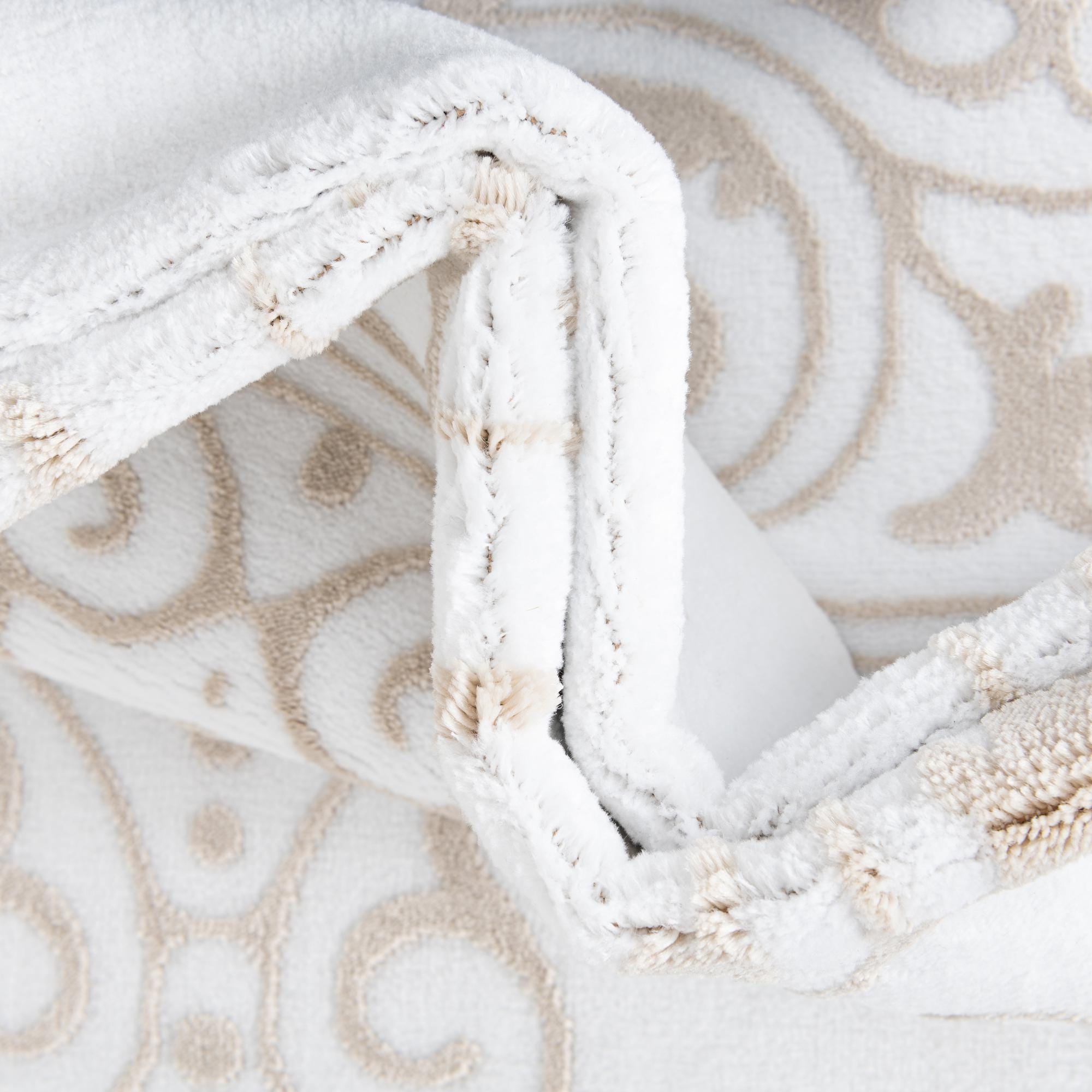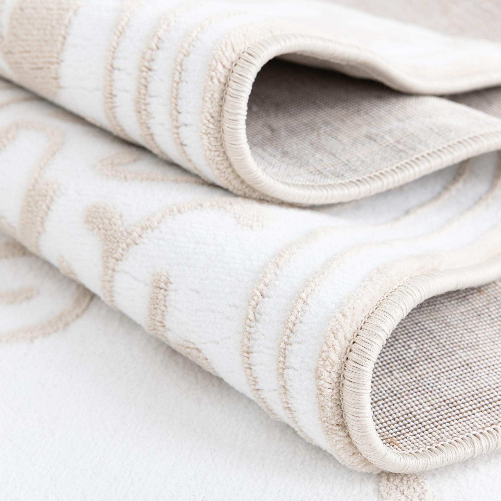 Primary color is Snow White. Colors in this rug include: Snow White, Beige.
