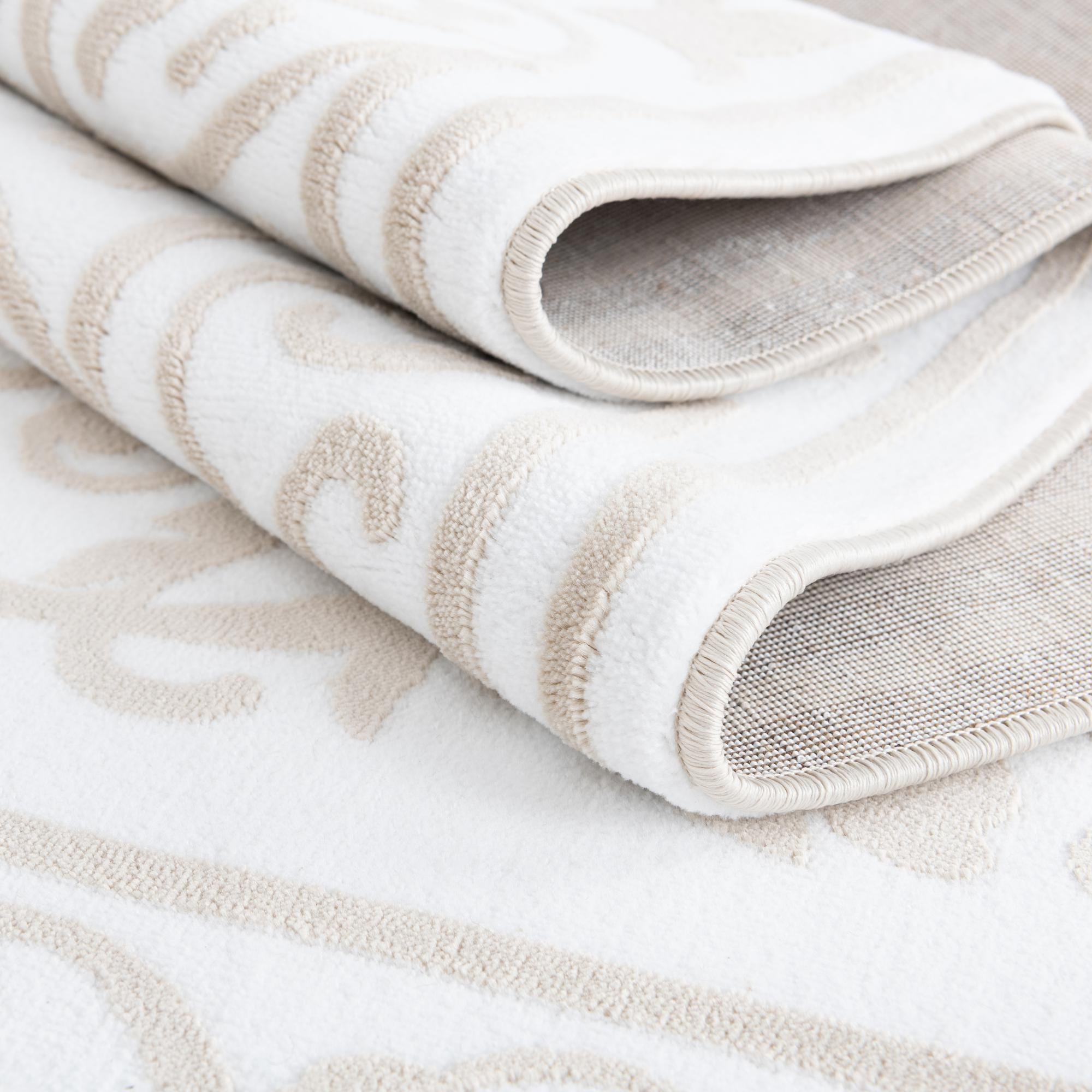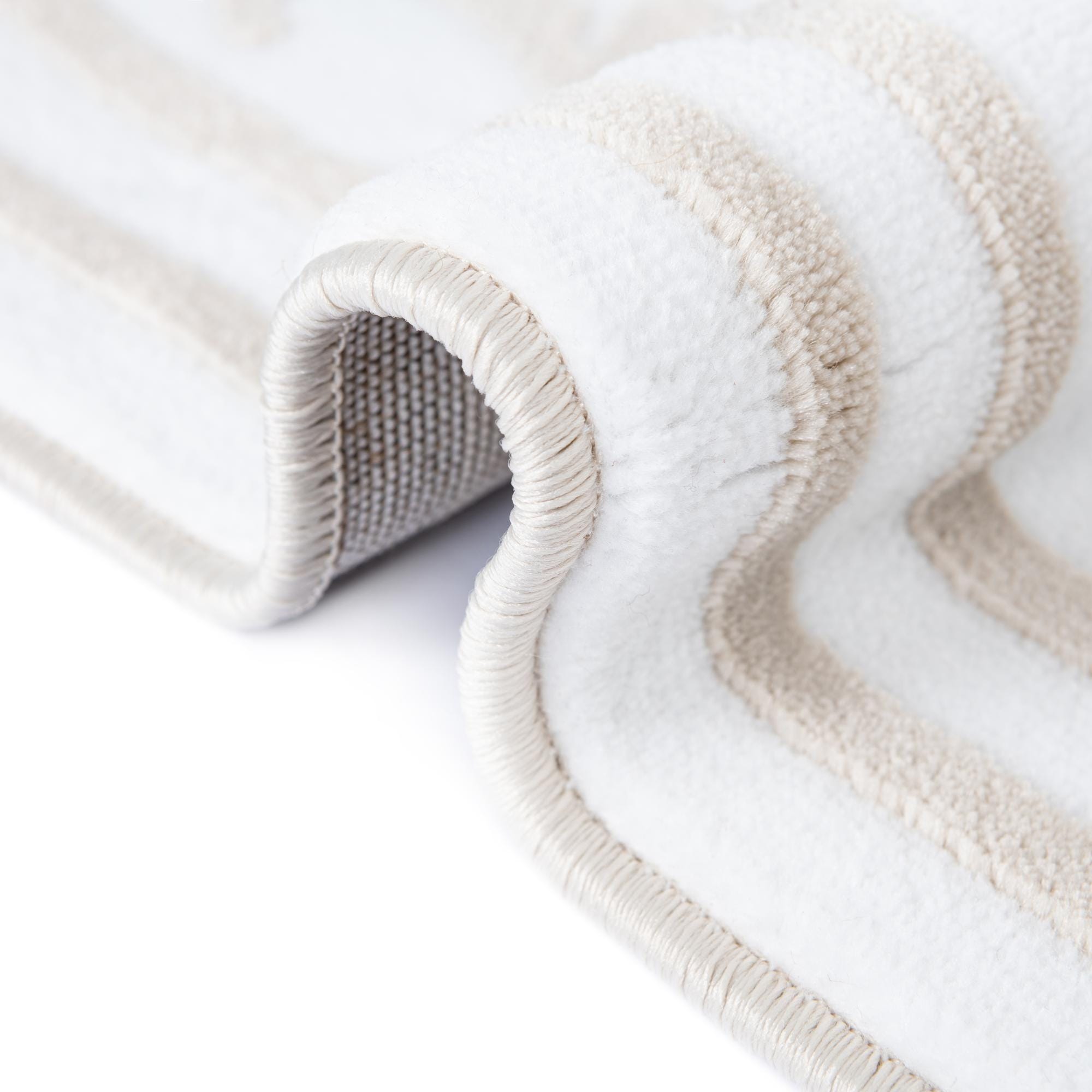 Primary color is Snow White. Colors in this rug include: Snow White, Beige.