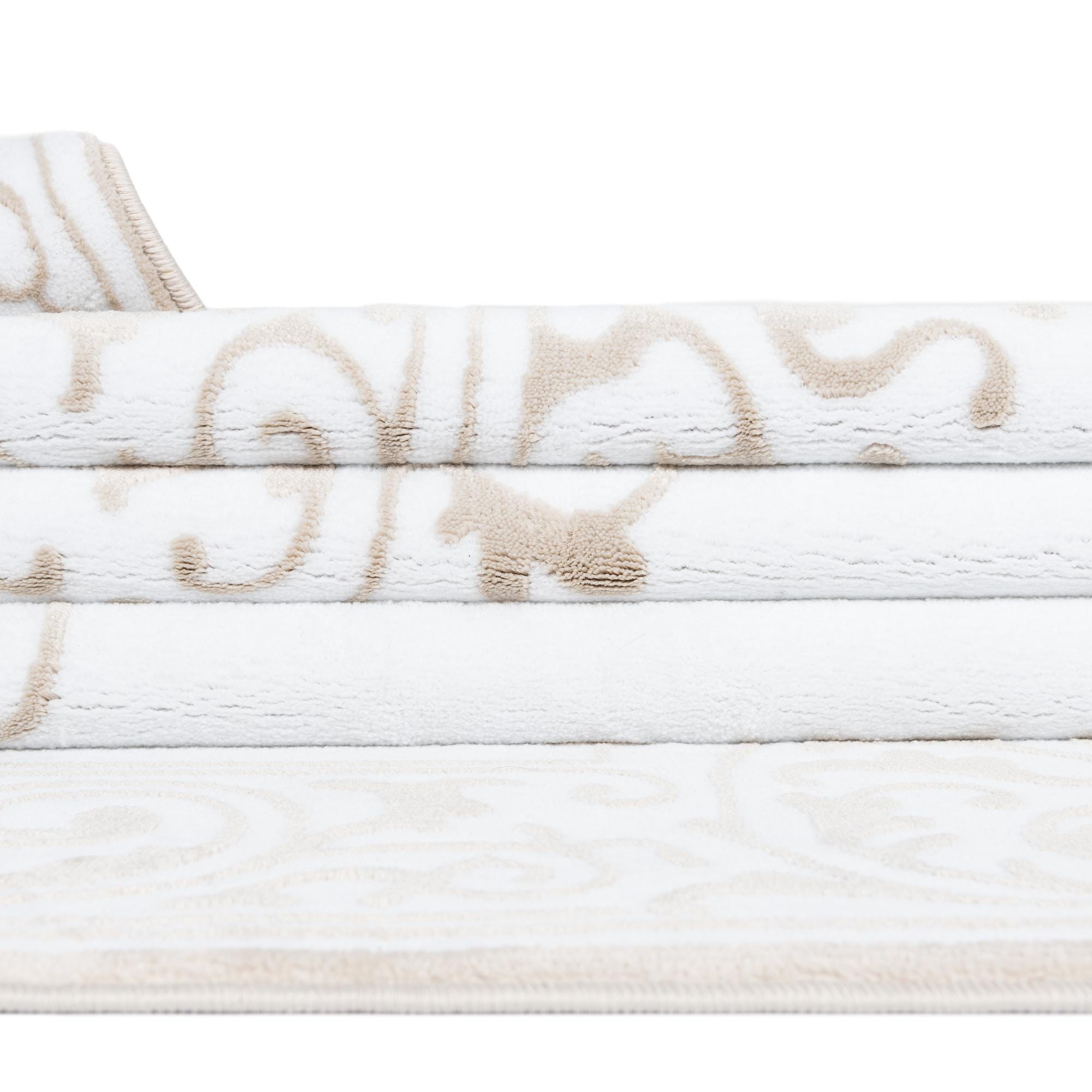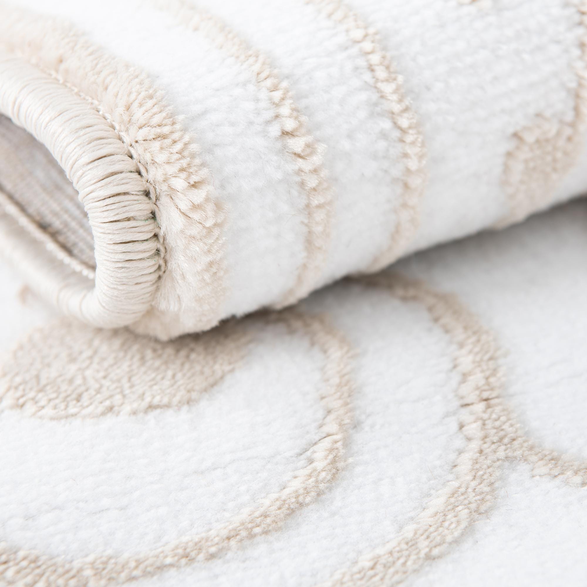 Primary color is Snow White. Colors in this rug include: Snow White, Beige.