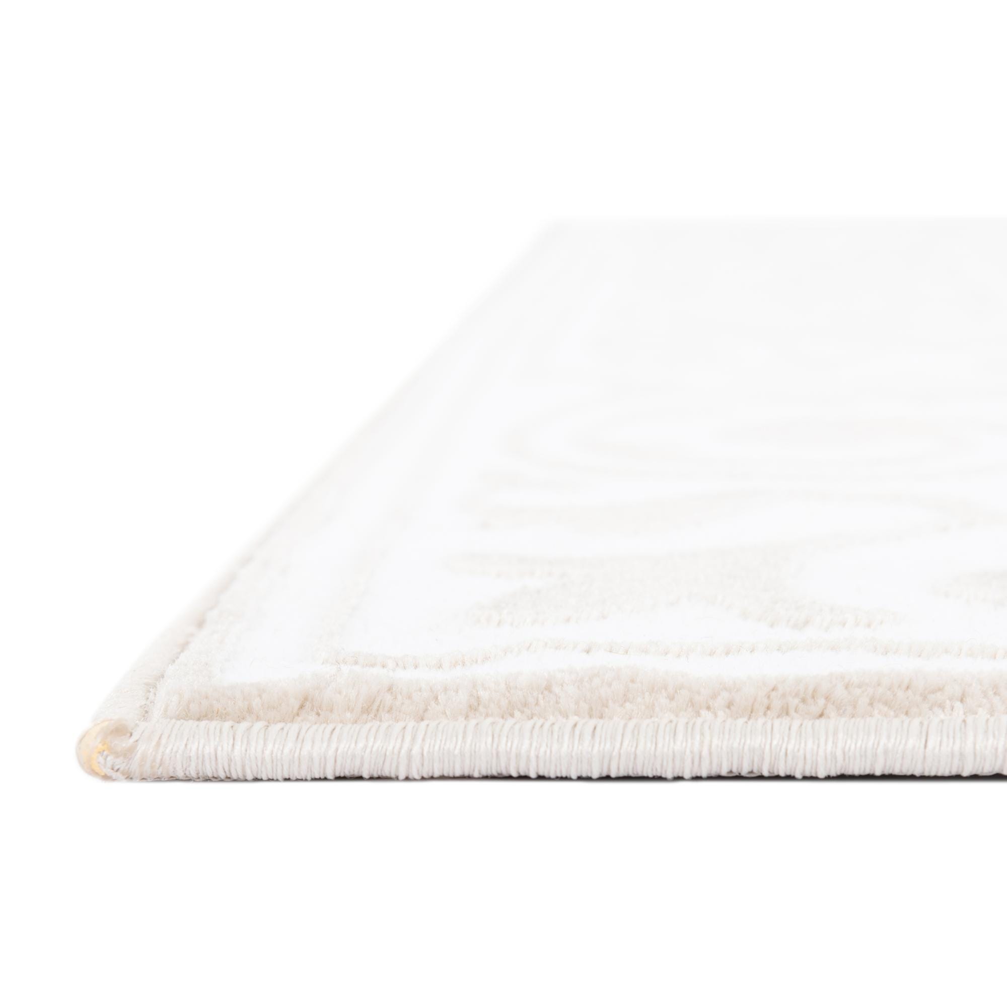 A 7x10 rectangular white area rug featuring an elegant beige traditional medallion and border pattern.