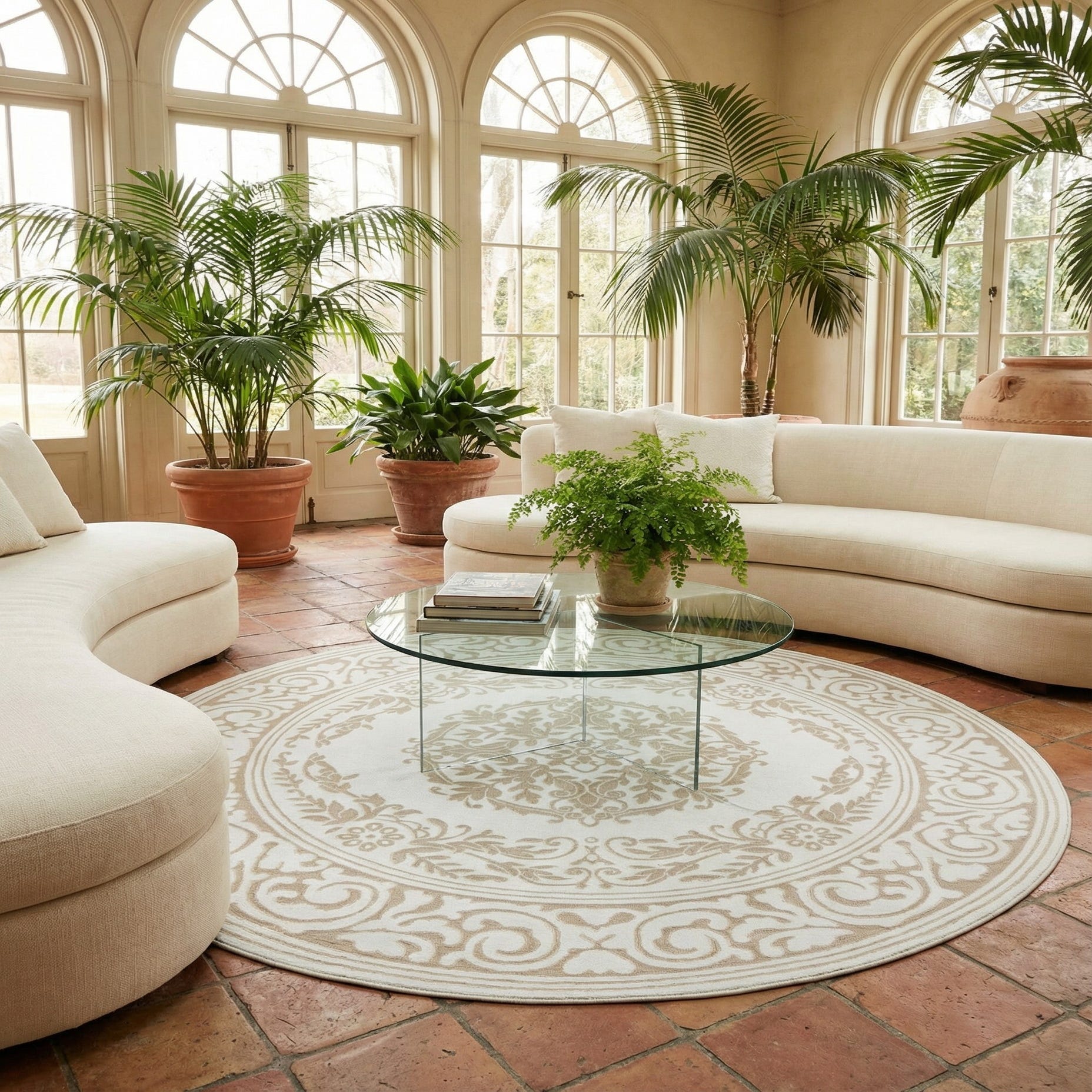 Primary color is Snow White. Colors in this rug include: Snow White, Beige.