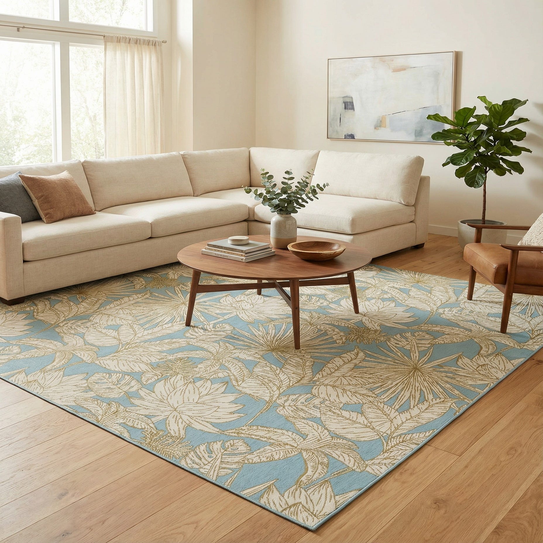 10' x 10' Washable Botanical Indoor / Outdoor Square Rug
