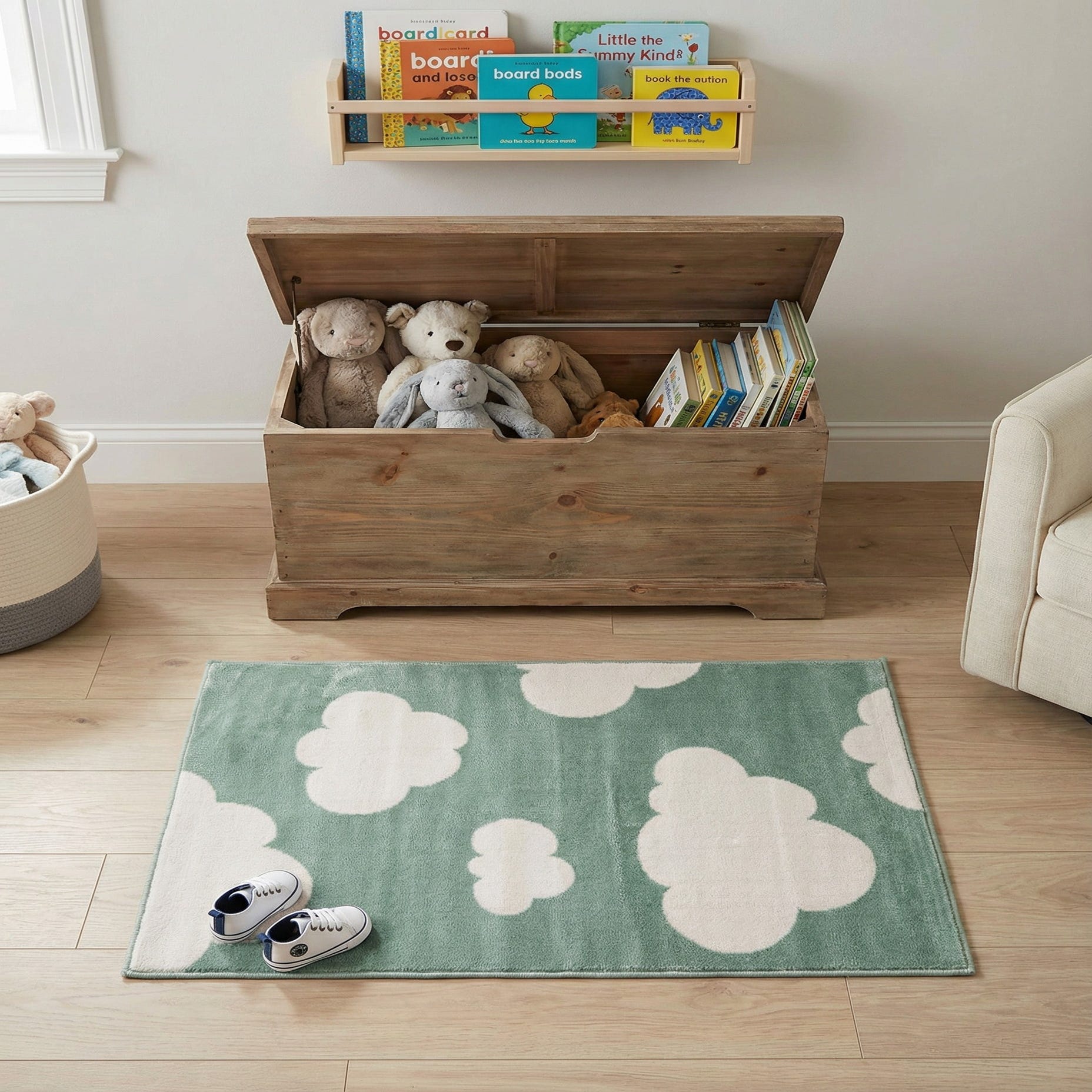 Primary color is Soft Green. Colors in this rug include: Soft Green, Ivory.