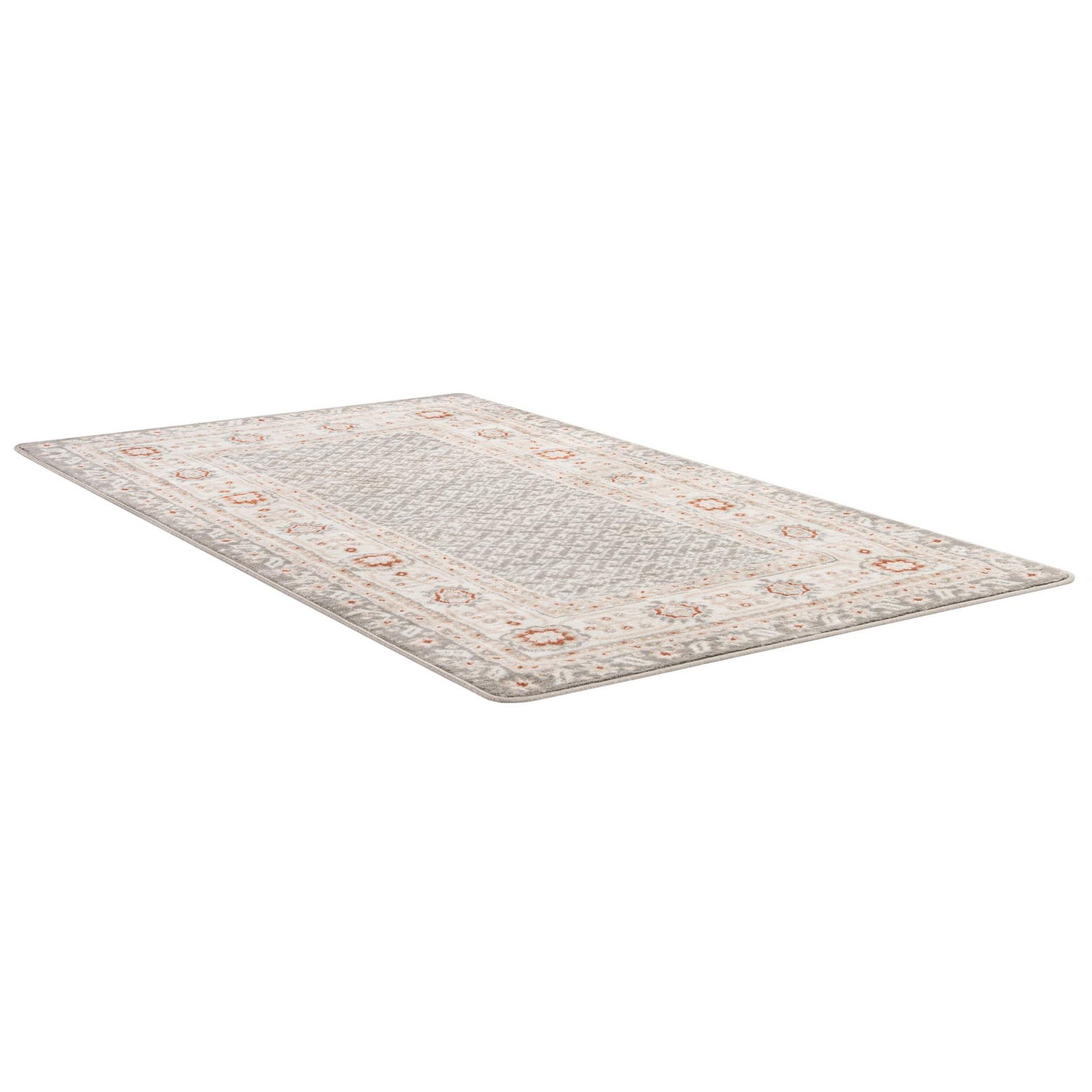 Primary color is Steel gray. Colors in this rug include: Steel gray, Ivory, Rust Red, Beige.