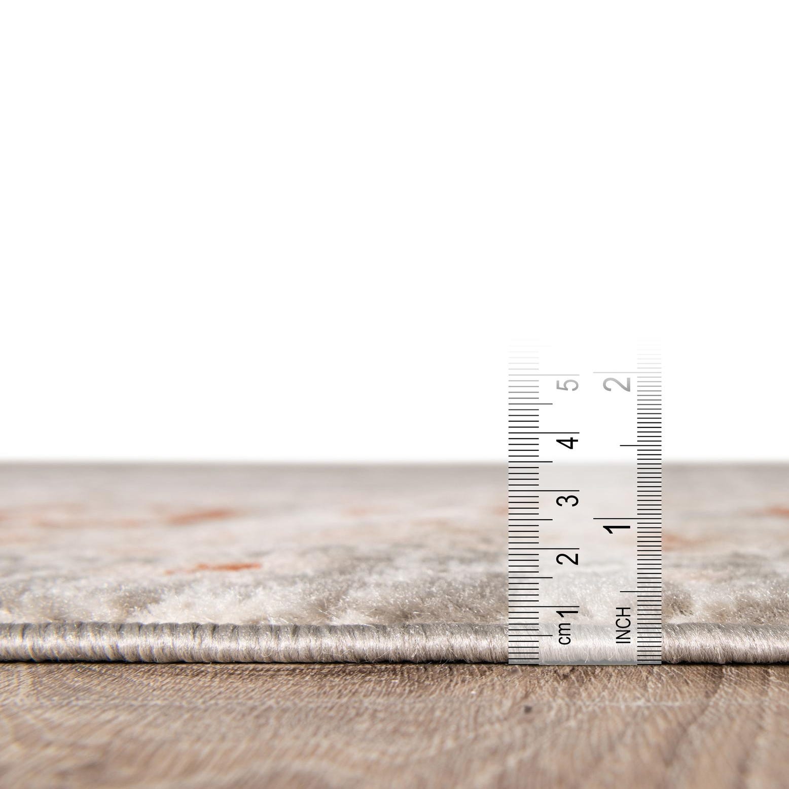 Primary color is Steel gray. Colors in this rug include: Steel gray, Beige, Ivory, Terracotta.