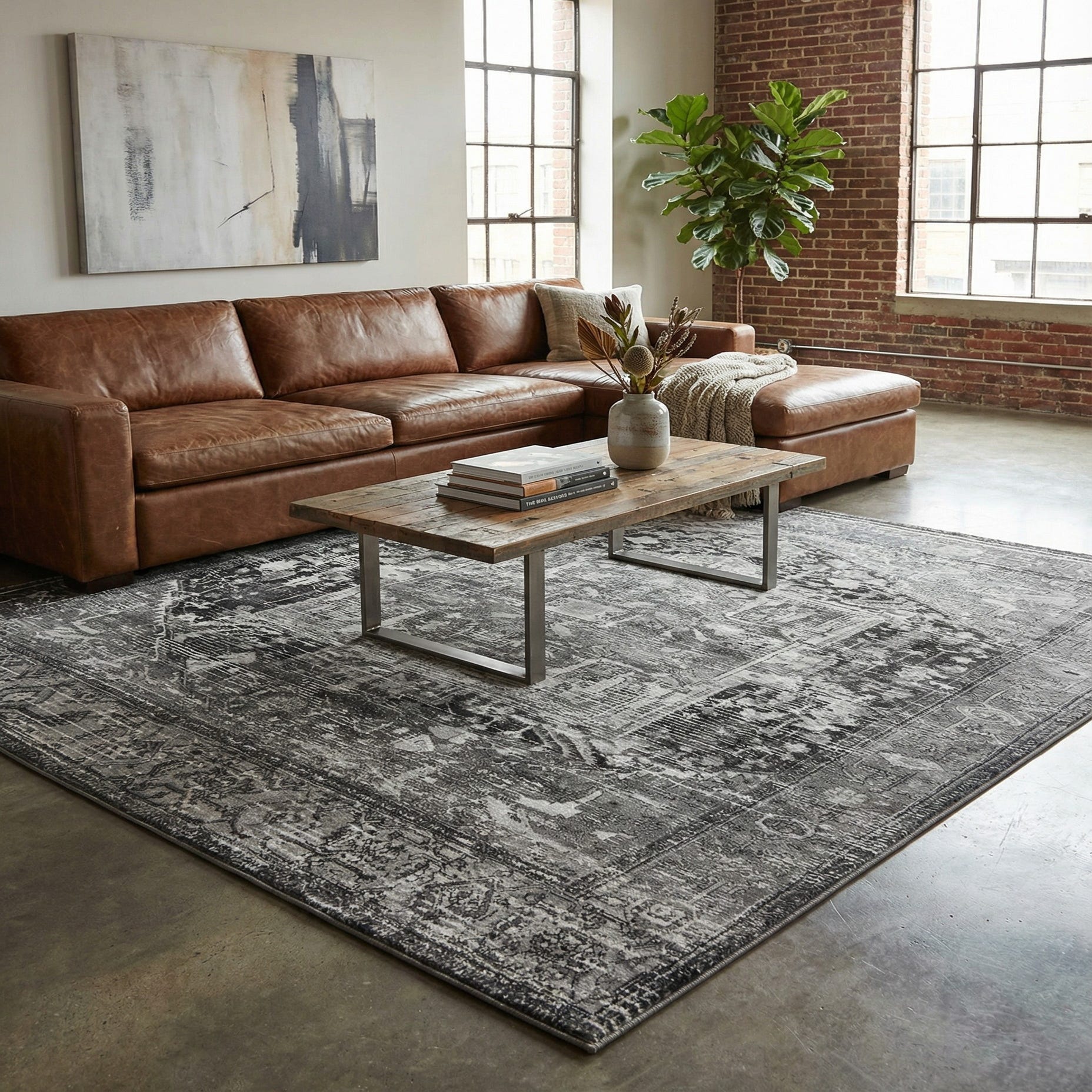 Primary color is Steel Gray. Colors in this rug include: Steel Gray, Black, Ivory.
