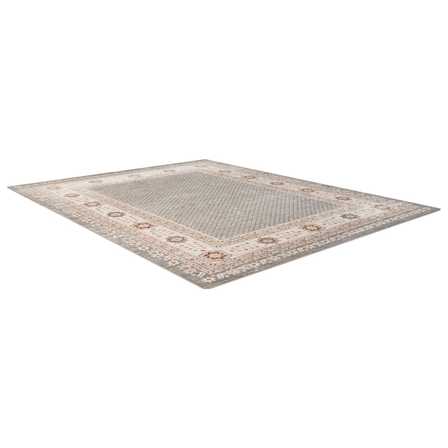 Primary color is Steel gray. Colors in this rug include: Steel gray, Beige, Ivory, Rust Red.
