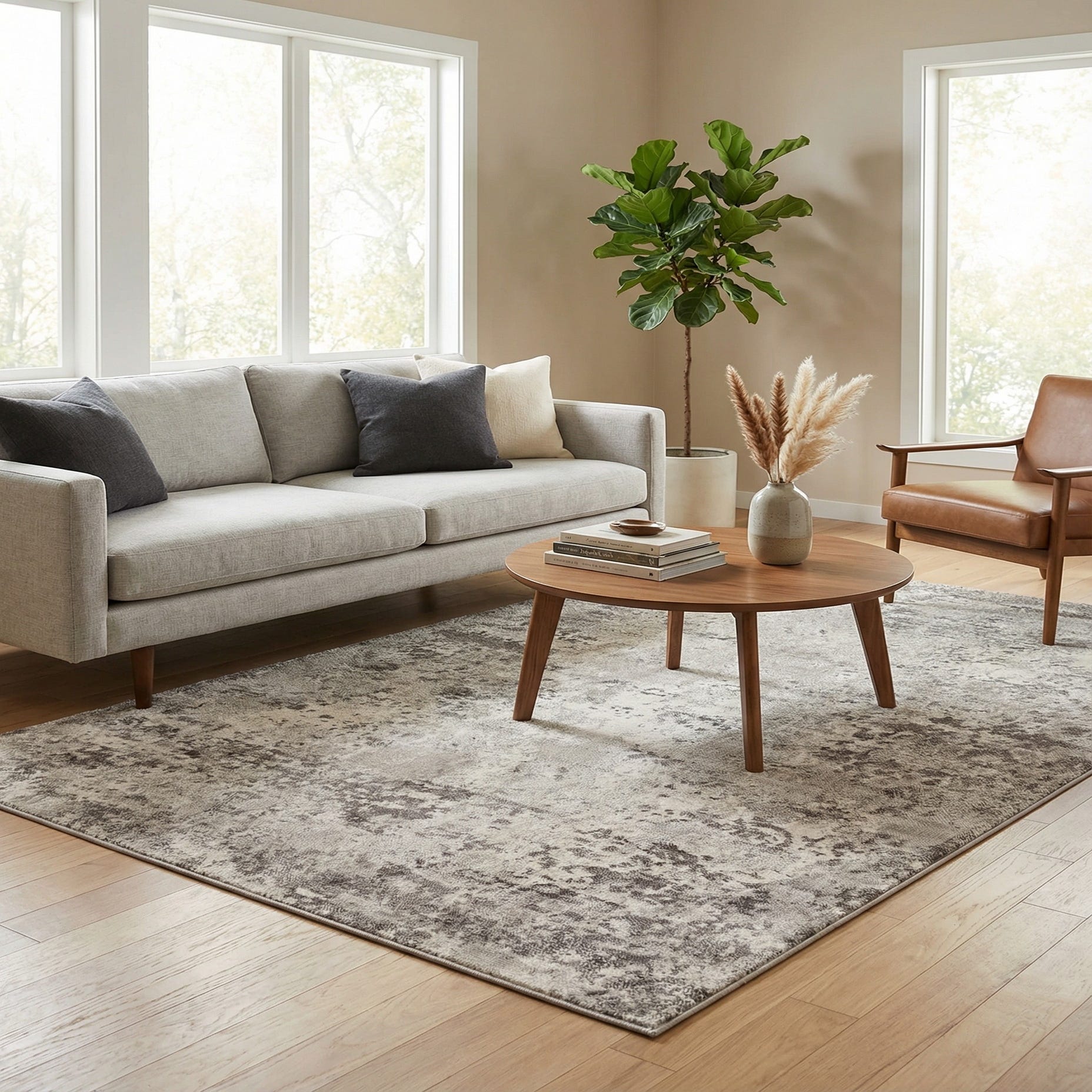This neutral palette and understated pattern make the rug a versatile anchor for many interiors. Use it under a sofa and coffee table to soften modern living rooms, layer it beneath a bed for a calm bedroom foundation, or place it in an entry or dining area to introduce texture without competing with existing decor. Pair with warm wood furniture, matte metal accents, and soft linens for a contemporary-transitional look, or keep the palette cool with white walls and charcoal accents for minimalist and Scandinavian-inspired spaces.