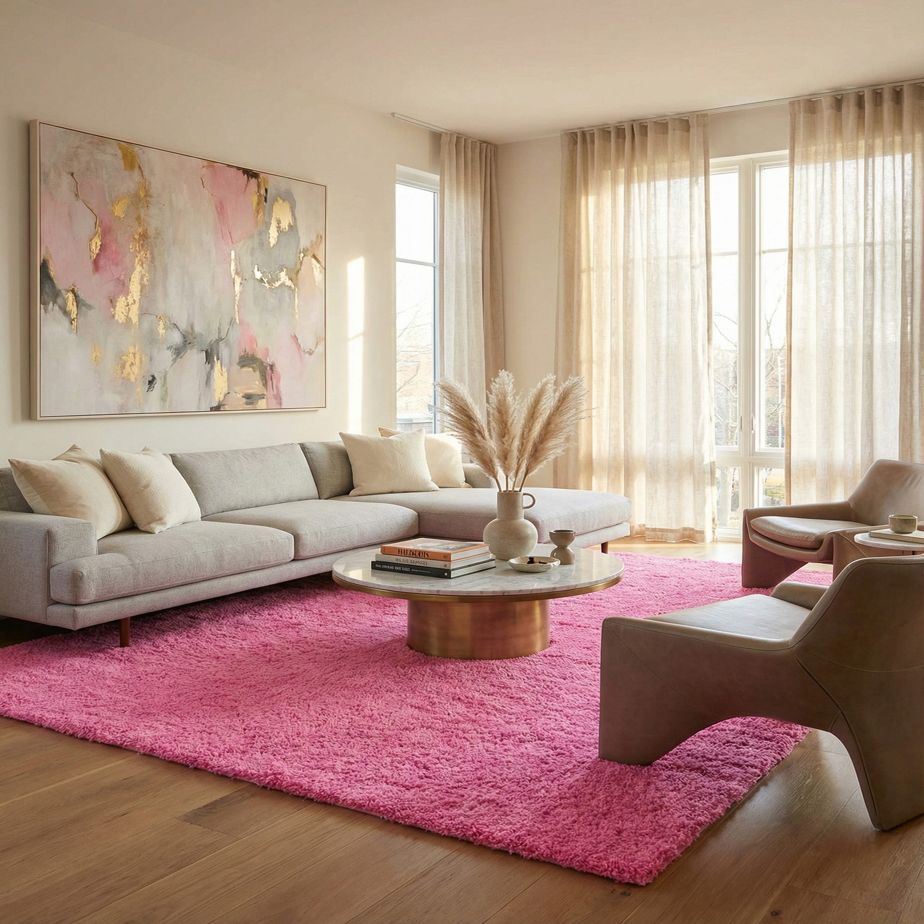 The durable construction is stain-resistant and shed-free, ensuring easy maintenance and long-term appeal. The vibrant Taffy Pink shade provides an energetic burst of color that can serve as a focal point or complement existing decor. The solid coloring allows for versatile styling, making it a suitable addition to a variety of interior design themes from contemporary to eclectic, or even a child's playful bedroom.