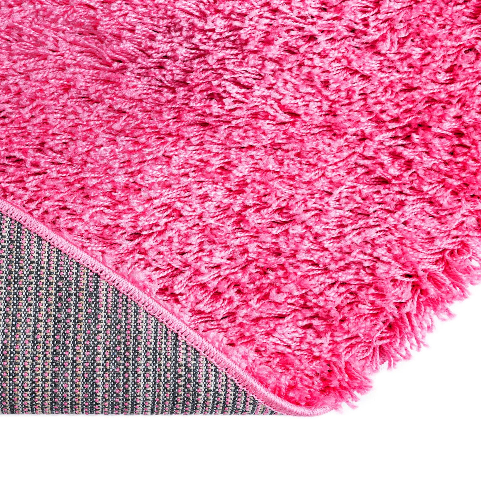 A round shag rug in a bright Taffy Pink hue, this piece offers a solid, uniform field of color with a plush, high pile that invites you to sink your feet in. The dense polypropylene yarns create a soft, slightly cloud-like surface with a textured, contemporary shag look that reads playful but refined. The even color and lack of pattern make it an easy focal point when you want a pop of color without visual clutter.
