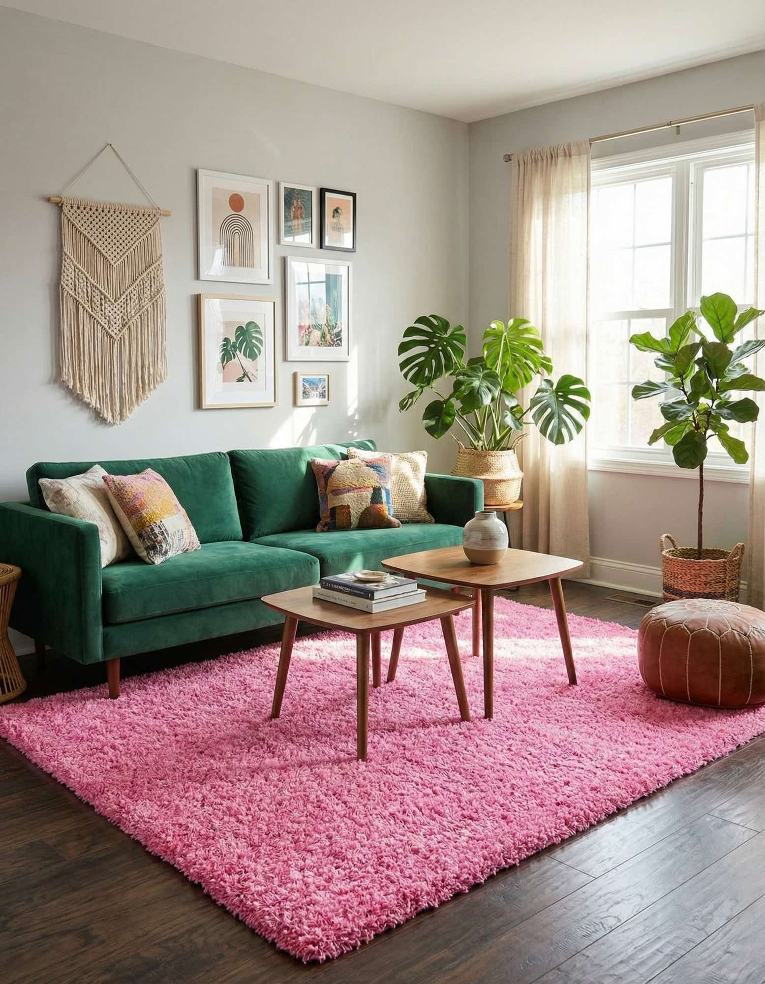 A plush, allover shag in a cheerful Taffy Pink, this rug offers a clean, pattern-free silhouette that reads modern and playful. Machine-made from 100% polypropylene, its dense pile has a soft, tactile feel underfoot with a gentle sheen that catches light across the surface. The long, fluffy fibers create visual depth and a cozy texture that invites bare feet and relaxed lounging.
