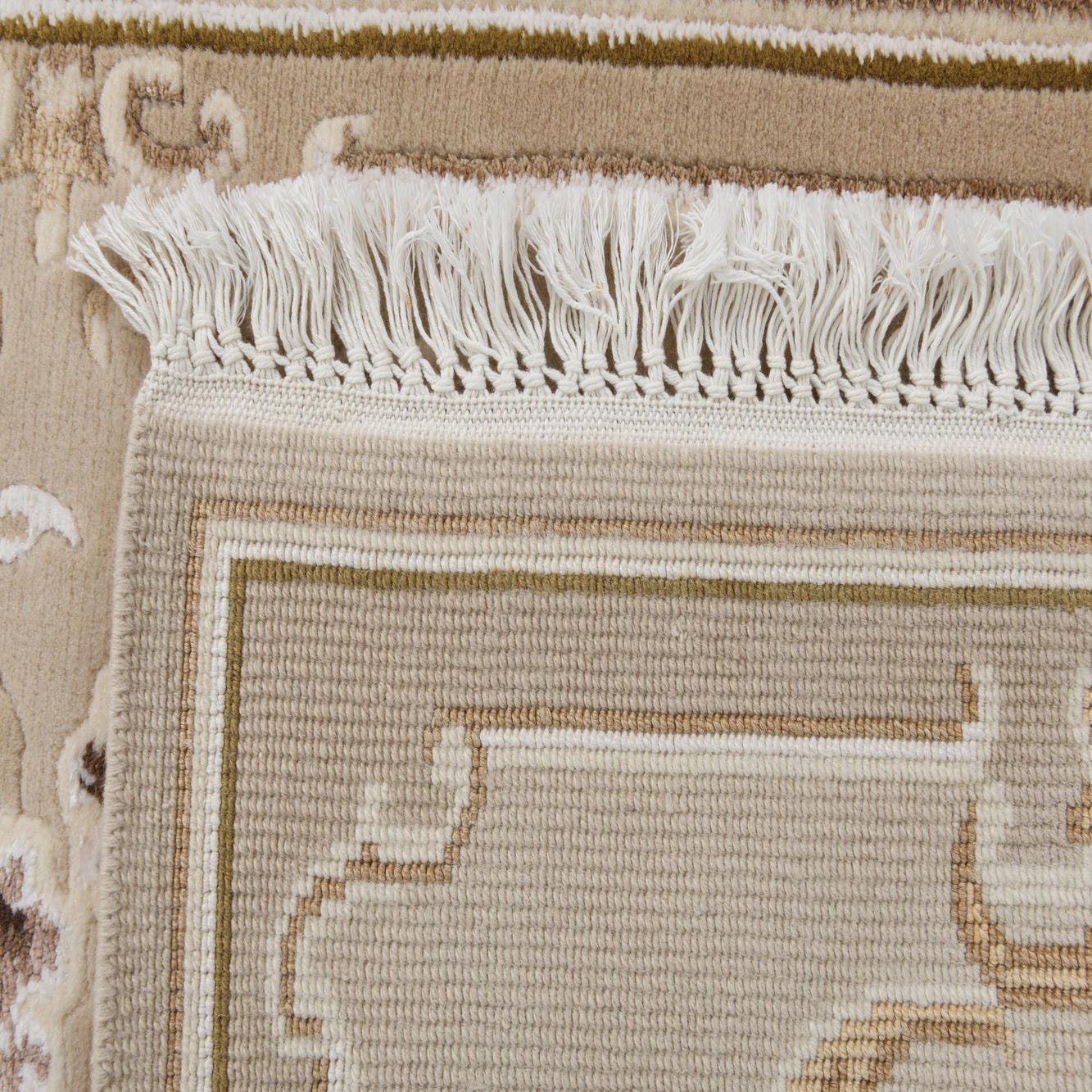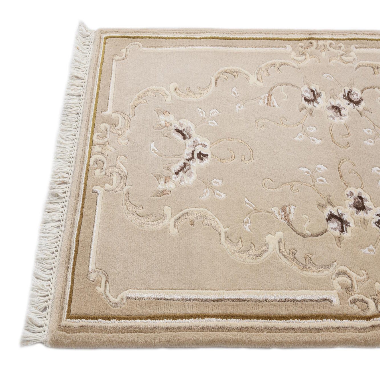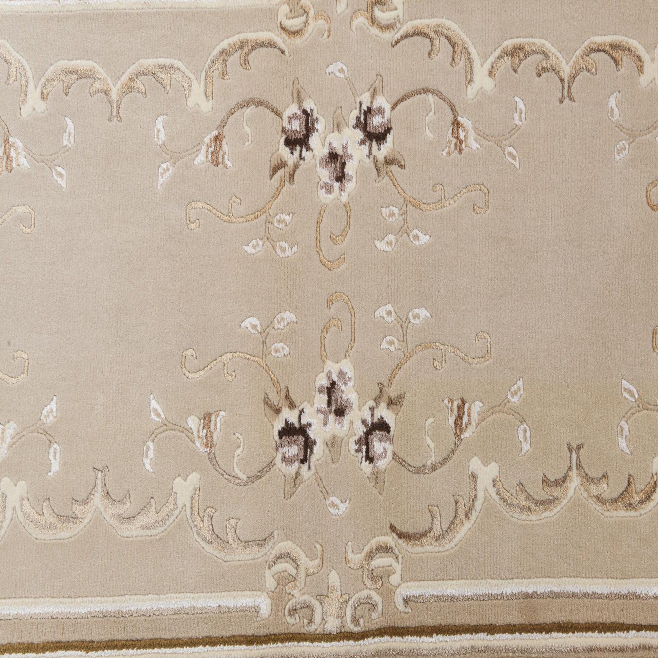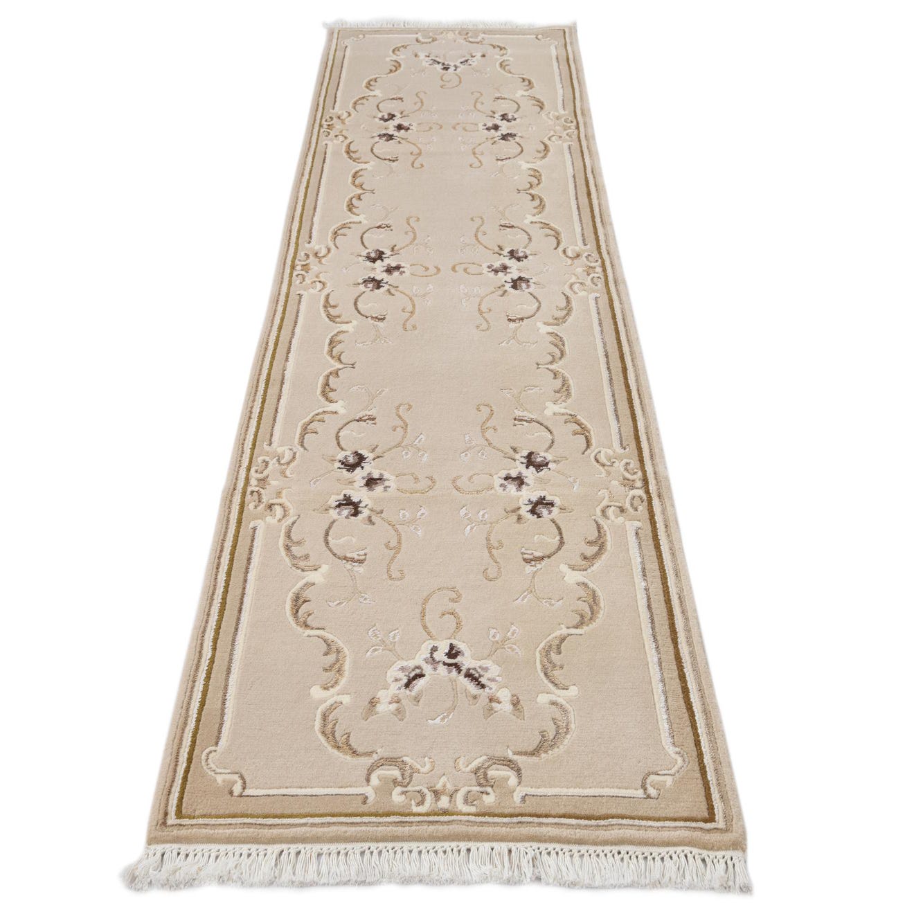 The texture of the 100% wool construction offers durability along with a soft handfeel, making it suitable for high-traffic areas such as hallways or long, narrow spaces that call for an elongated decorative element. This rug's harmonious color palette and design can seamlessly blend with various interior styles, from traditional to more modern spaces that seek a touch of classic flair. Ideal for adding a touch of understated opulence to a home office, entryway, or alongside a dining area, it can help define a space and create a welcoming atmosphere.