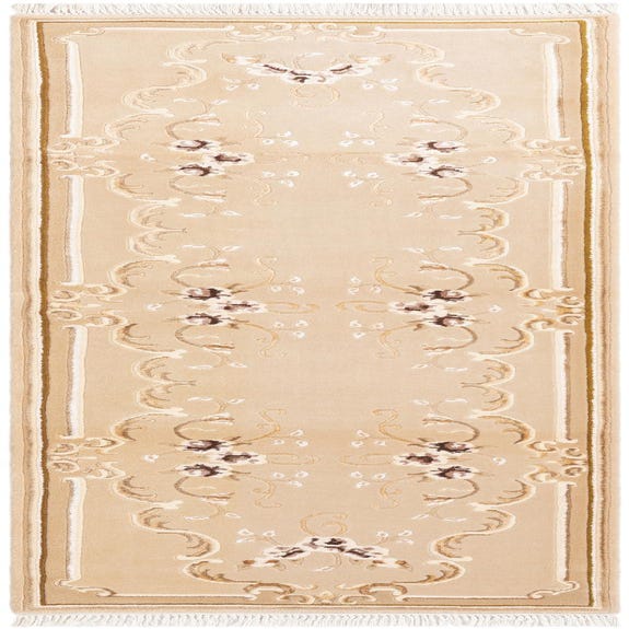 Primary color is Tan. Colors in this rug include: Tan, Brown, Ivory, Light Brown.