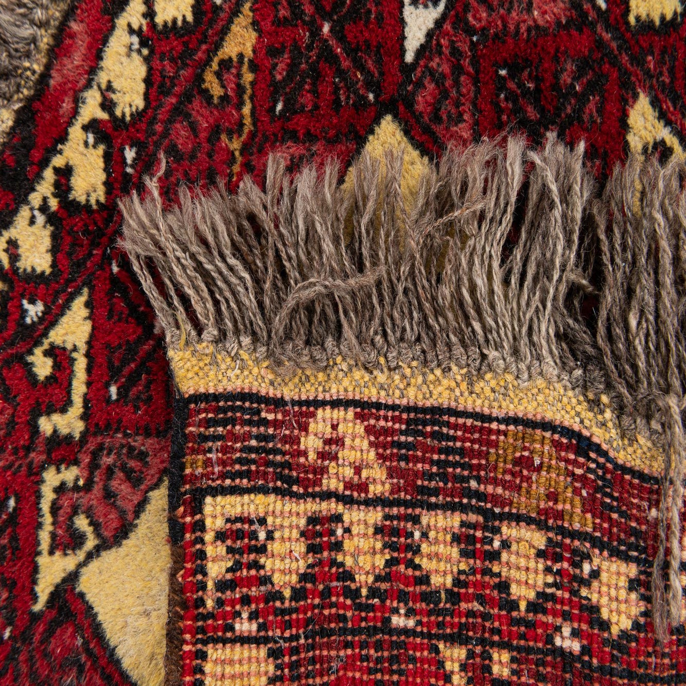 In Very Good condition, with Low Pile Spots, Missing Fringe, Spot Stain. Further details can be seen in the pictures