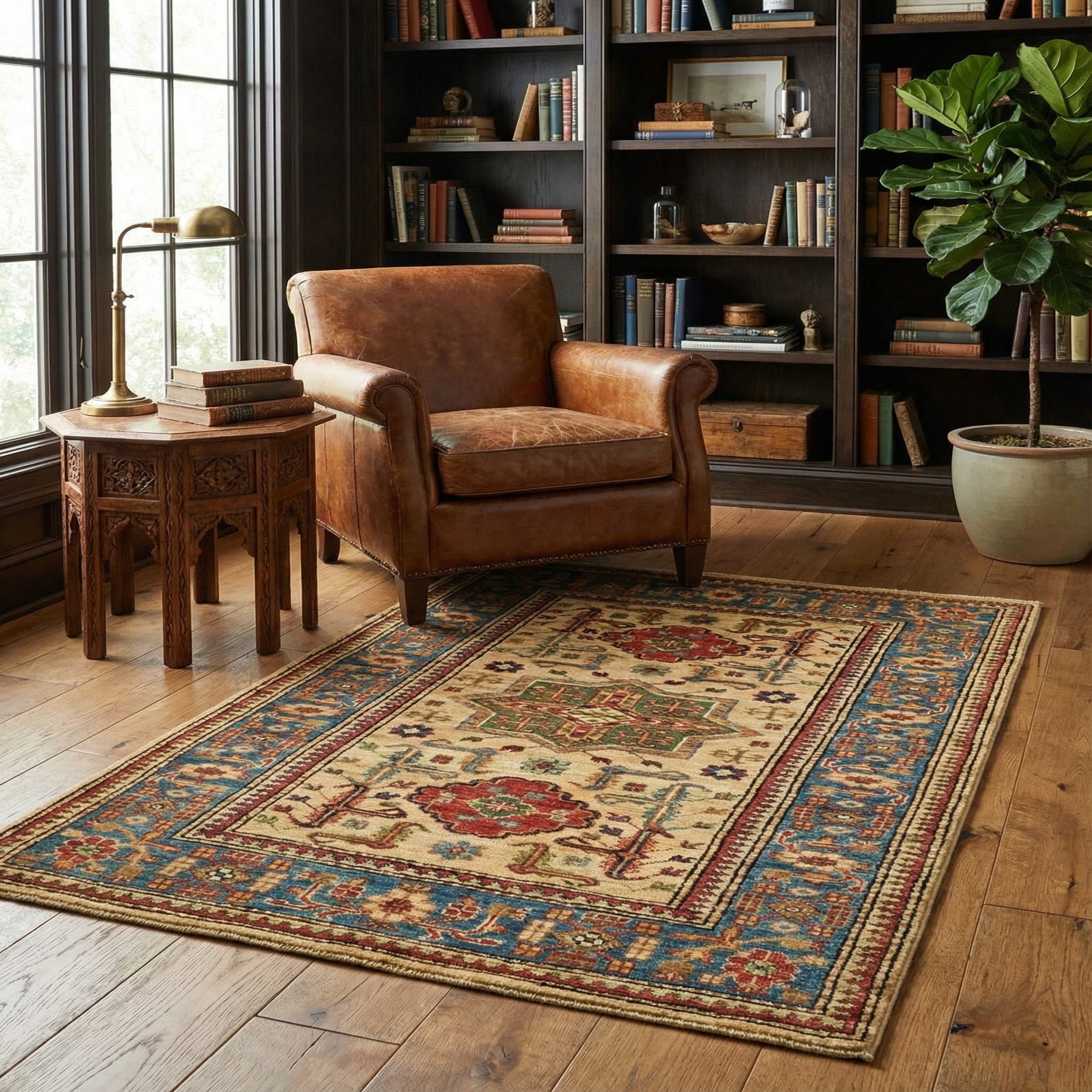 Given its intricate pattern and vibrant colors, this rug can serve as a focal point in a variety of interior settings. It is especially well-suited for spaces that draw inspiration from classical or global influences, such as a traditional living room, a sophisticated office, or a bohemian-style bedroom. In more minimalist or contemporary rooms, it can provide a striking contrast and infuse a sense of heritage and warmth.