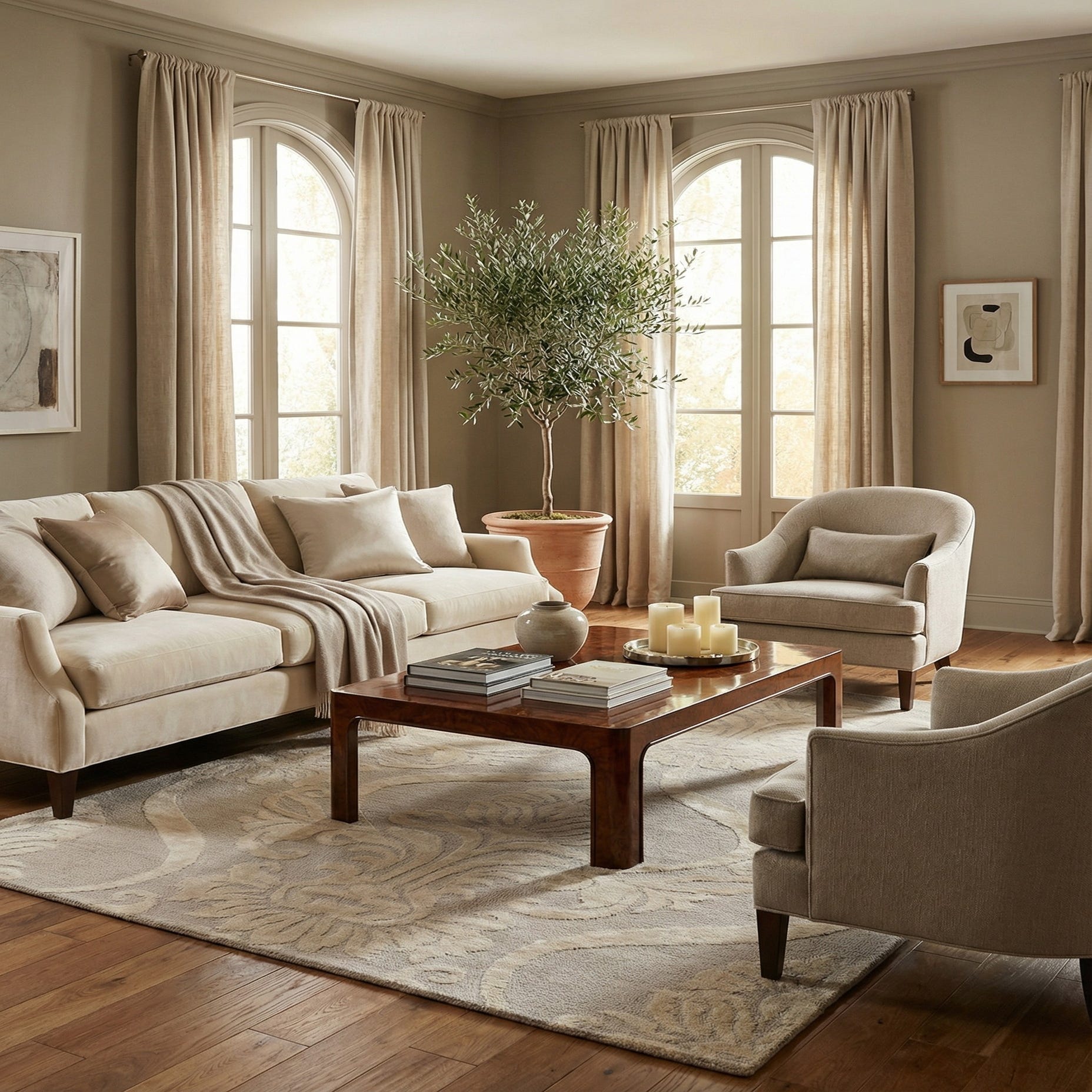 This rug works well tucked under a small coffee table, layered at the foot of a bed, or anchoring a compact seating area or entry — anywhere a refined, neutral foundation is needed. It pairs naturally with warm wood tones, linen upholstery and brass or aged-metal accents, and complements both traditional and transitional interiors where calm, textural detail is desired.