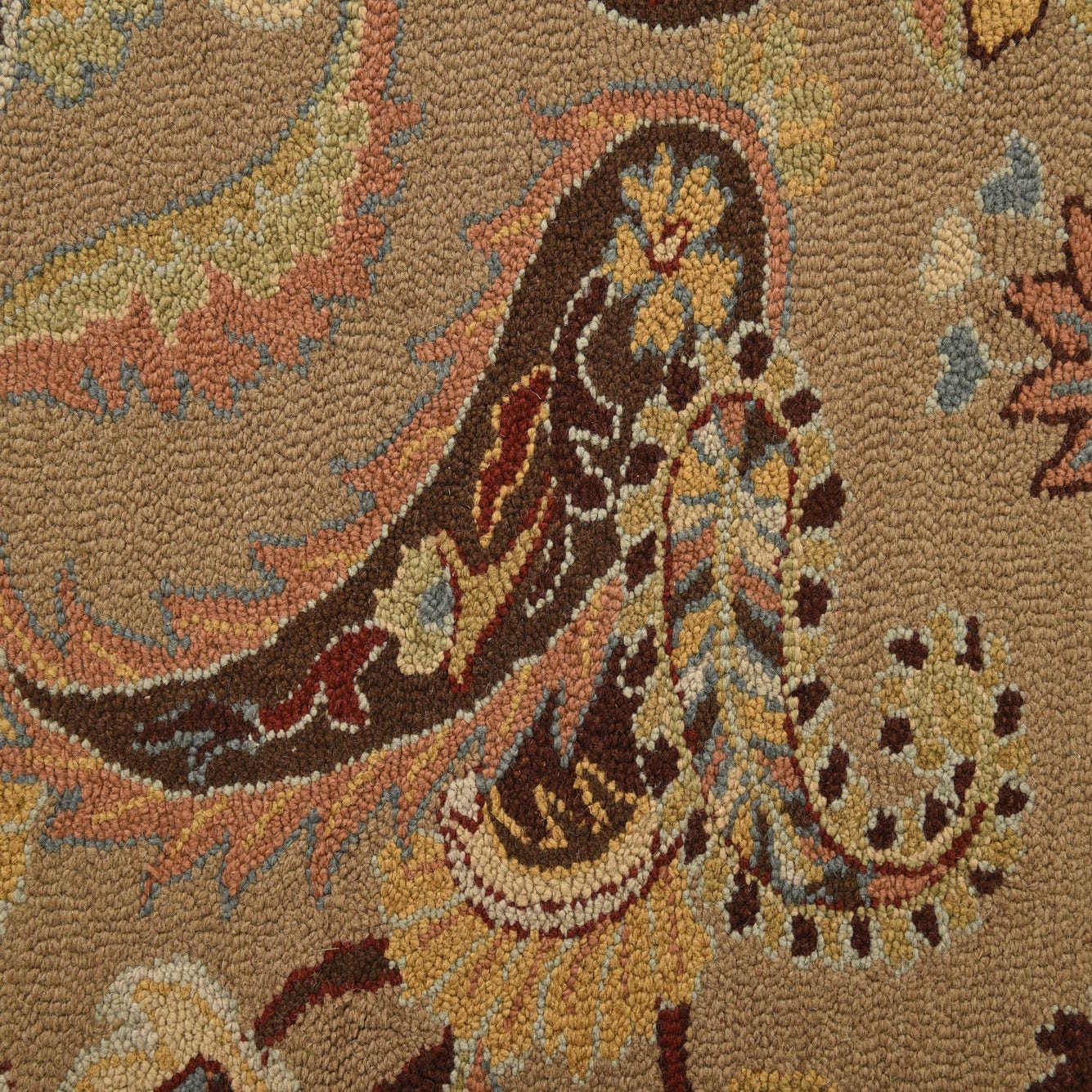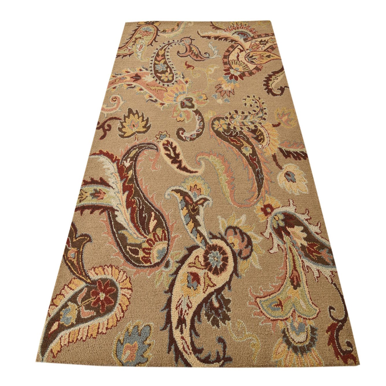 Large-scale paisley and floral motifs flow across a warm tan field, their sinuous outlines rendered in shades of brown and burgundy and filled with touches of light blue, ivory, light green, light salmon, yellow and beige. The pattern strikes a balance between traditional paisley ornament and relaxed, contemporary colorways; the motifs are open and airy rather than densely packed, so the background tan provides a steady, grounding presence. Hand-tufted of wool and cotton, the rug has a soft, tactile pile with subtle dimensionality where the tufting lifts the design, offering a comfortable, slightly cushioned feel underfoot.