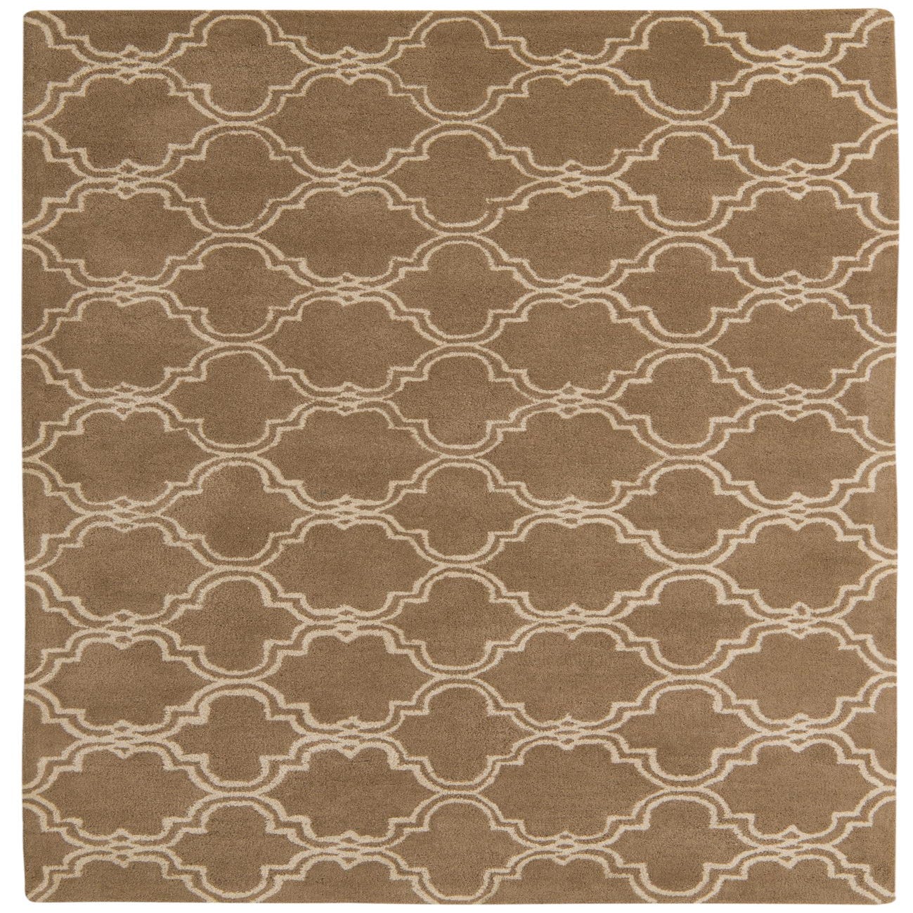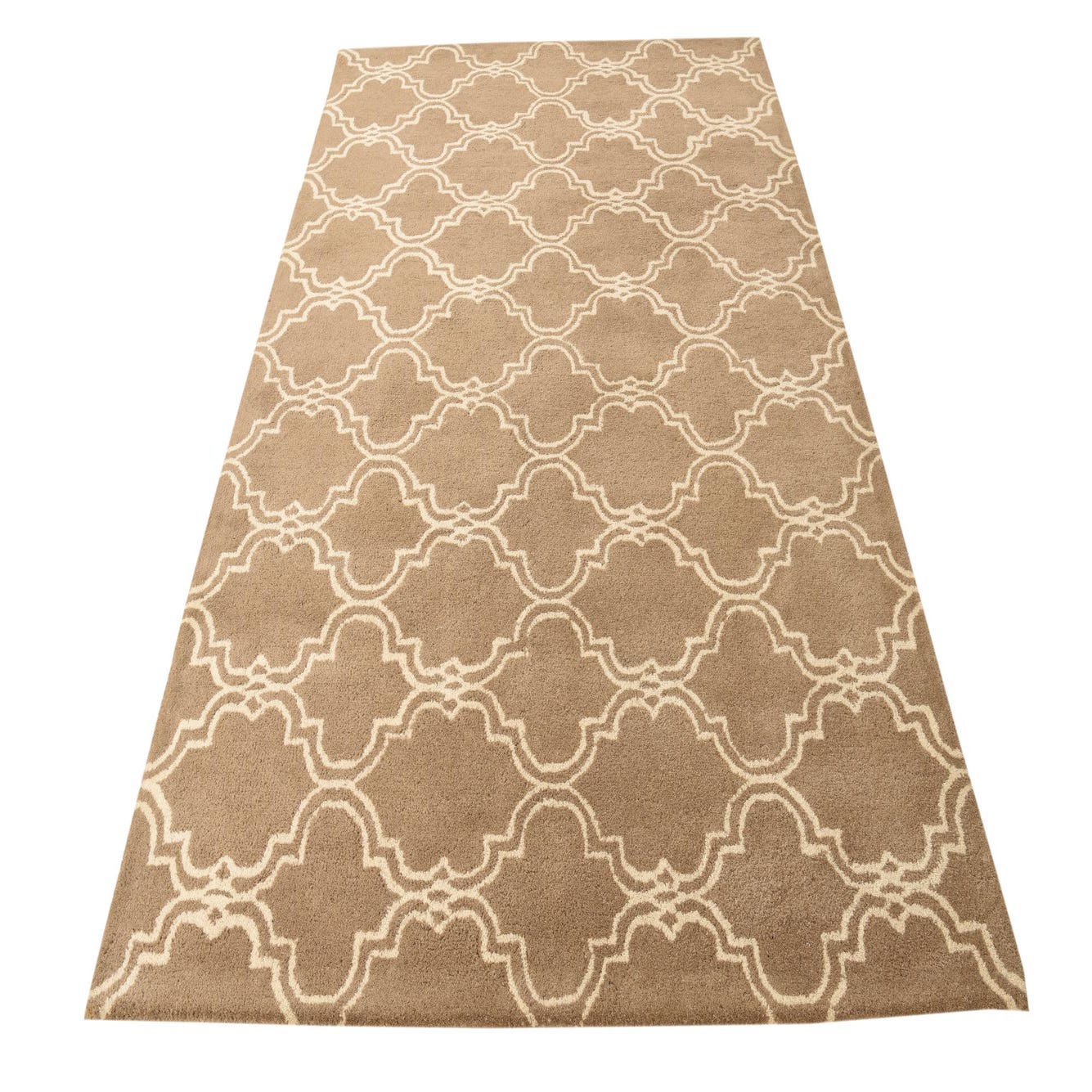 A rectangular 5x8 Luna Collection rug with a modern Moroccan trellis pattern in brown and ivory.