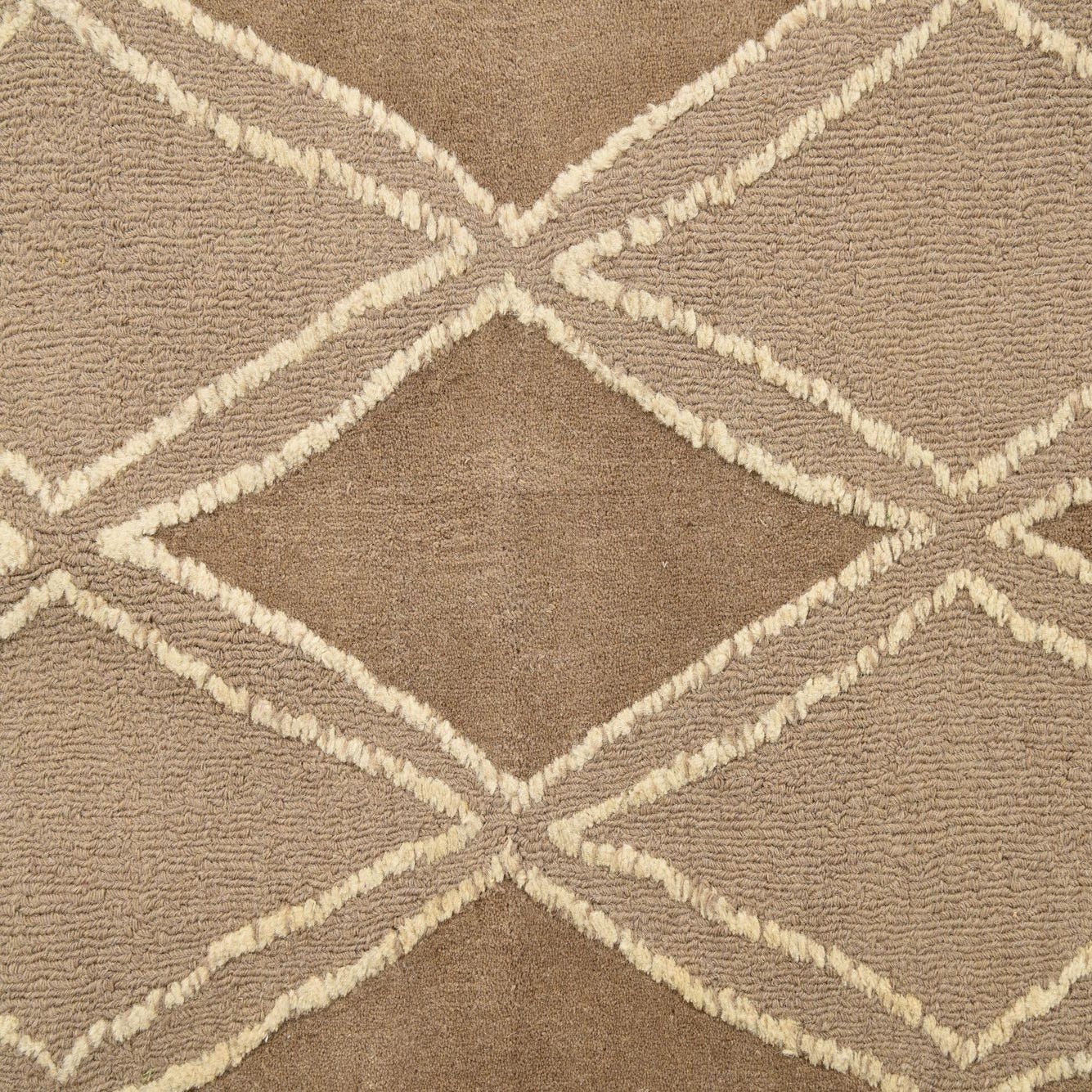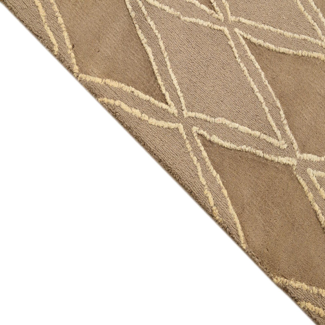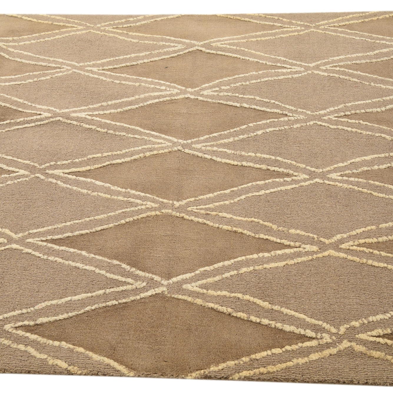 A 5x8 rectangular Luna Collection wool rug featuring a modern diamond pattern in varying shades of brown and cream.