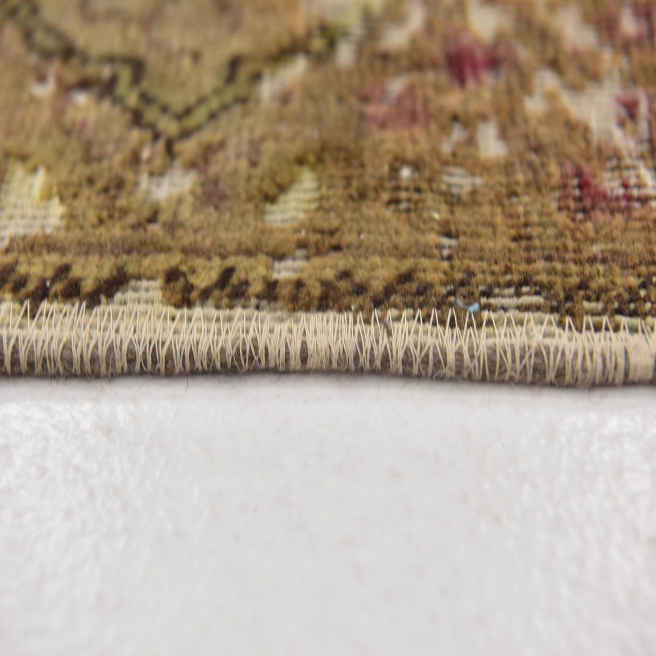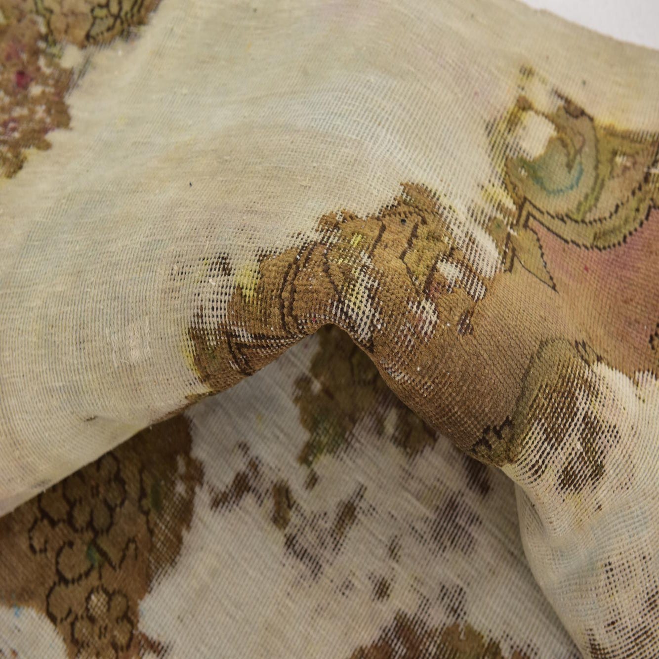 This rug would integrate seamlessly into interiors that celebrate a mix of old-world charm and contemporary design. It is an excellent choice for a living room, dining area, or bedroom where its artful wear can complement furnishings that have a rustic or vintage flair. Additionally, it can serve as a sophisticated anchor in a more modern space, providing contrast and depth. Its versatile colors allow for easy coordination with a wide range of color schemes and furniture styles.