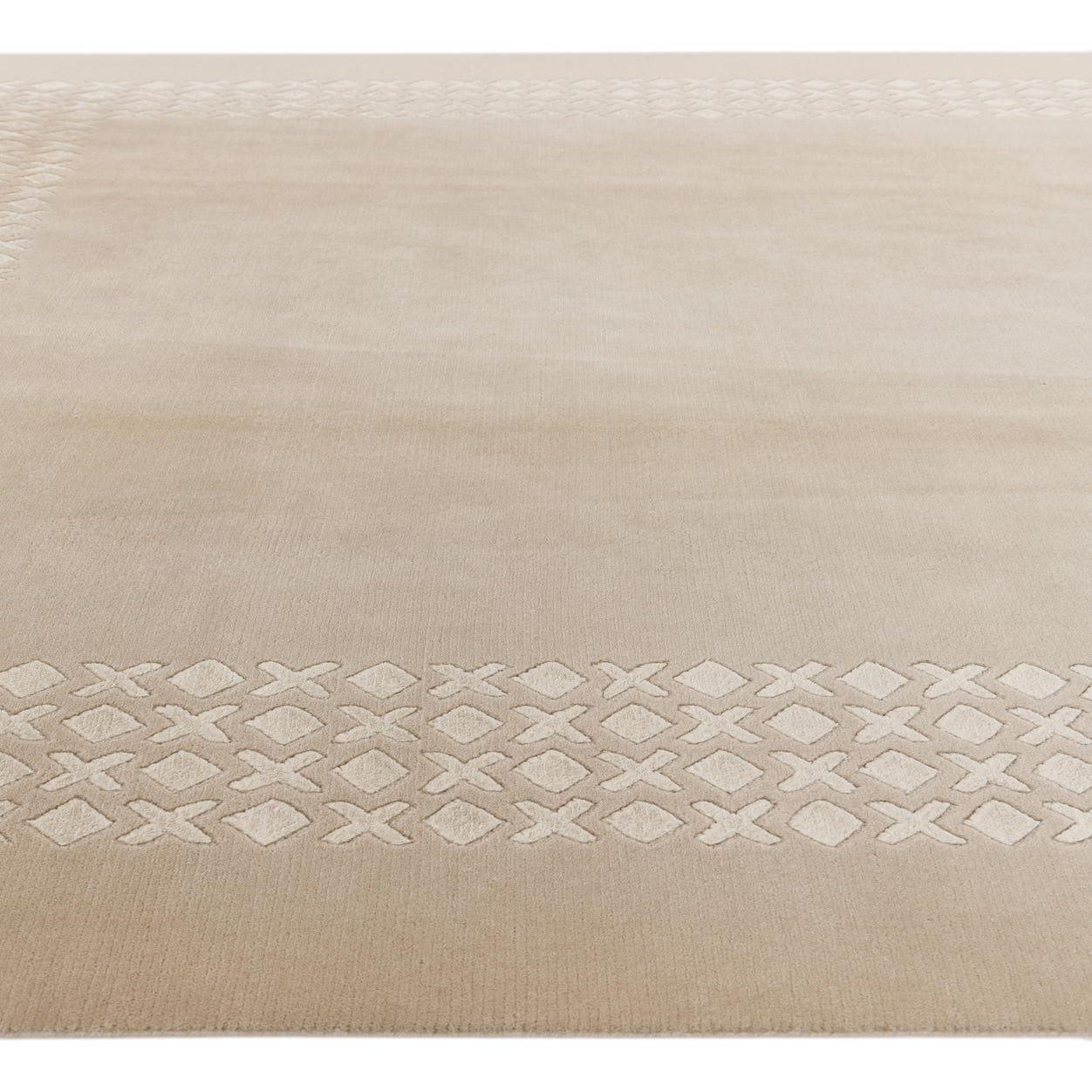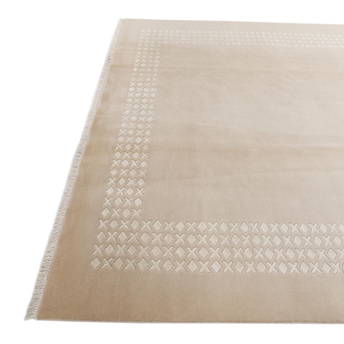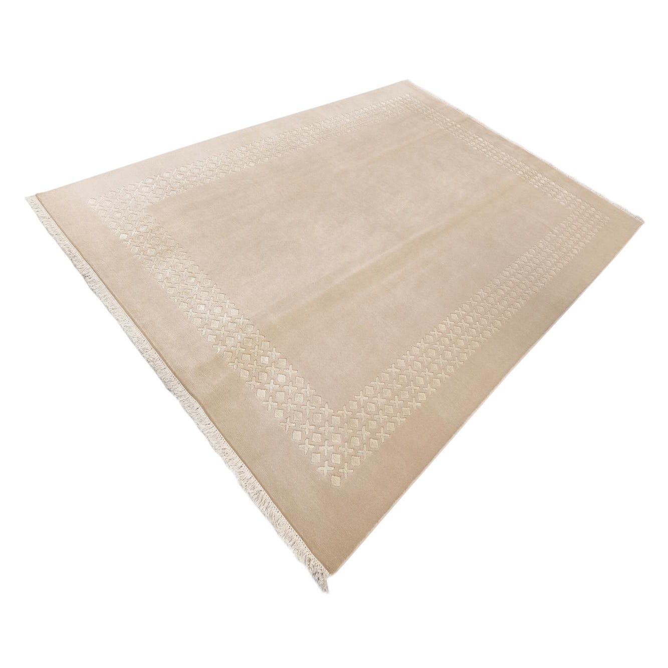 A 7x10 rectangular Darya rug in light brown and ivory with a modern geometric border pattern.