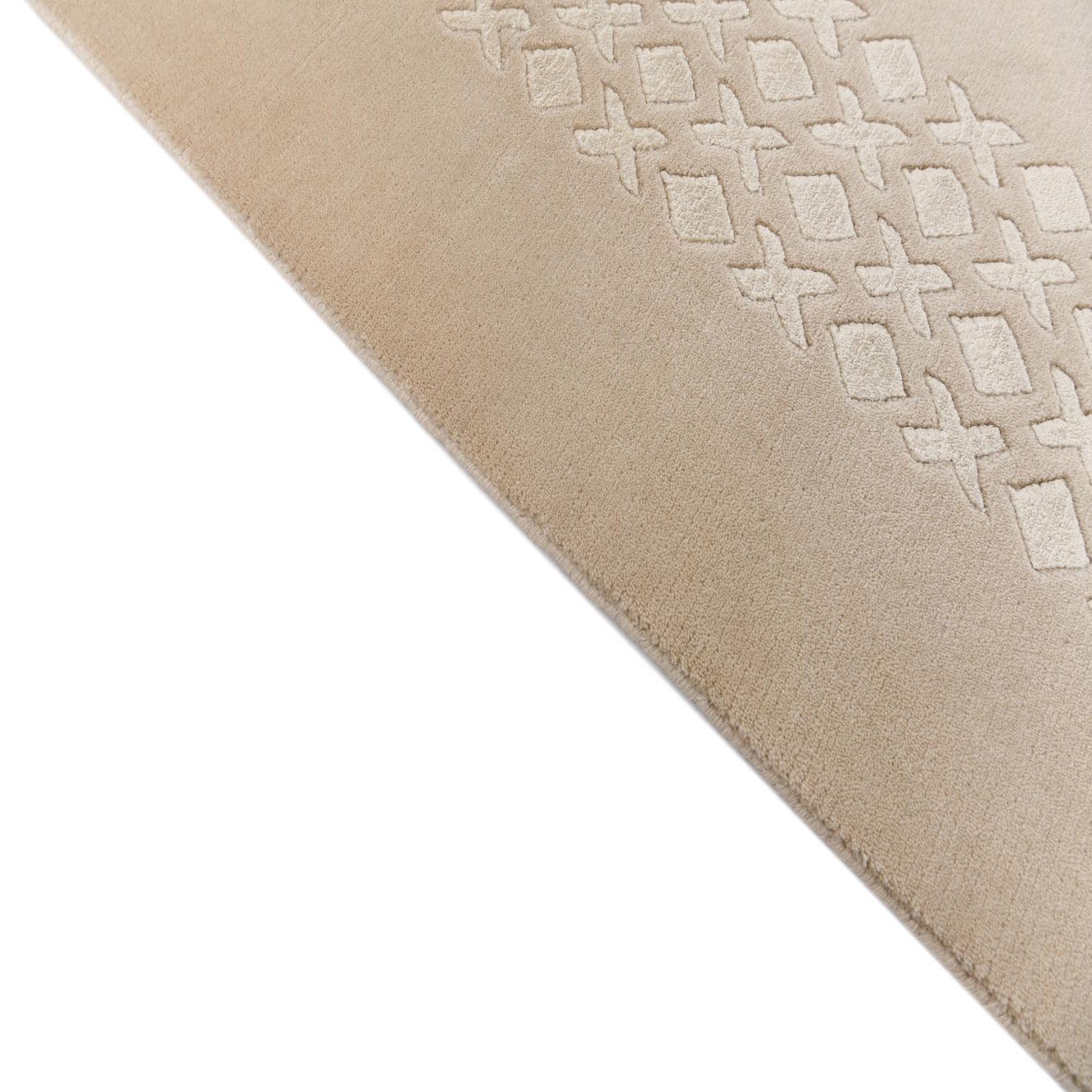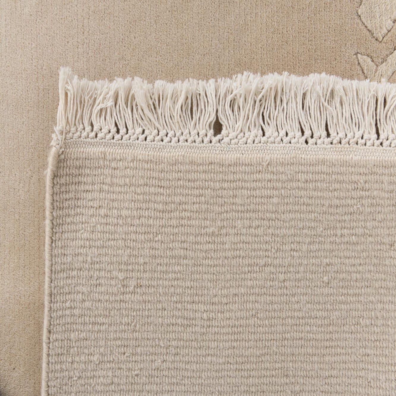 Primary color is Tan. Colors in this rug include: Tan, Beige.