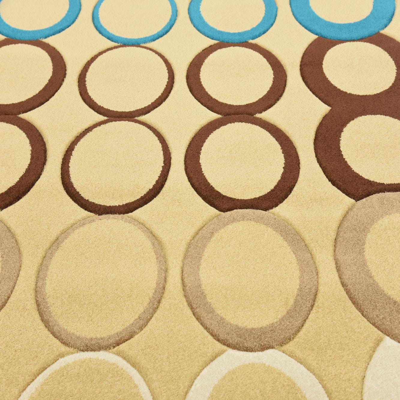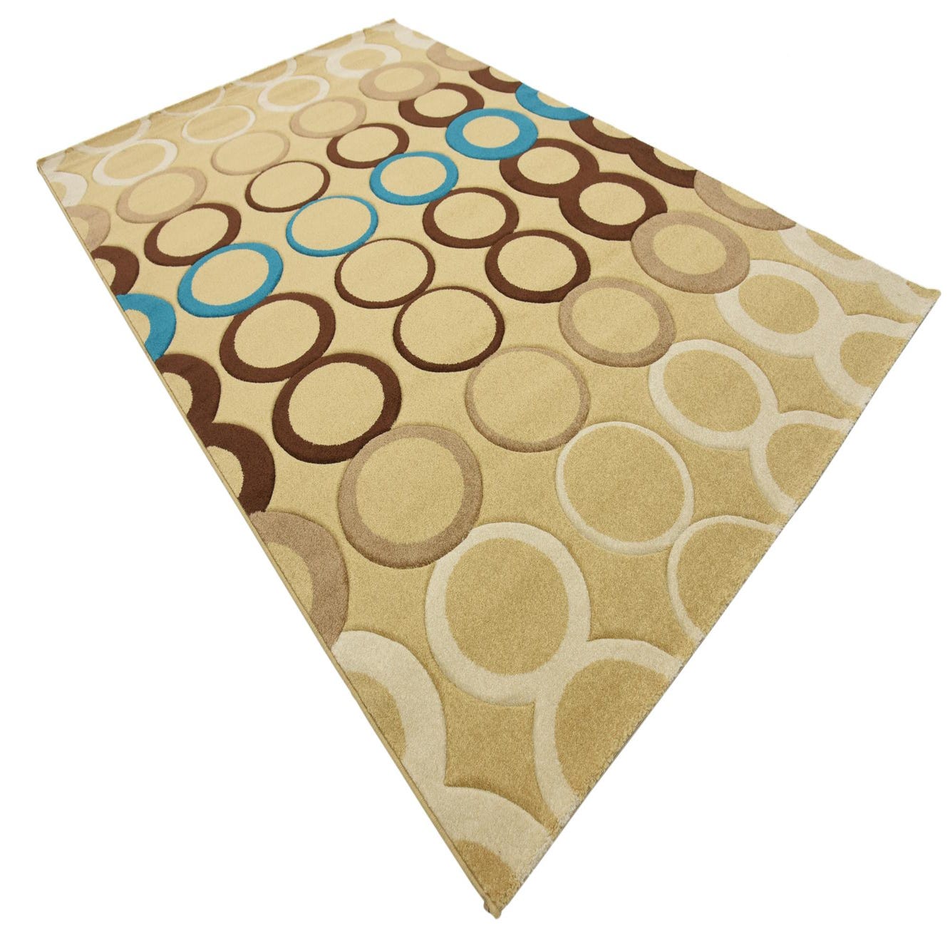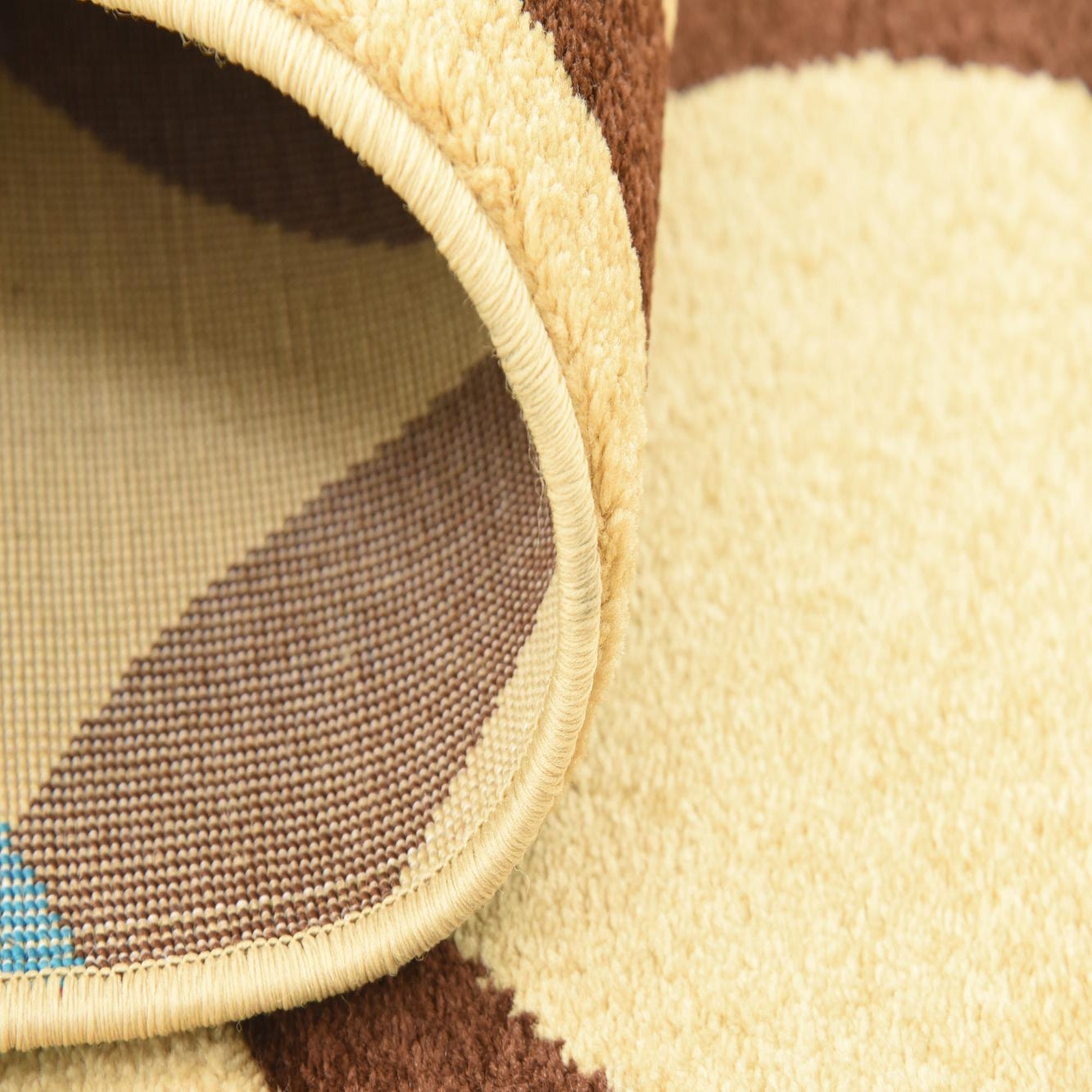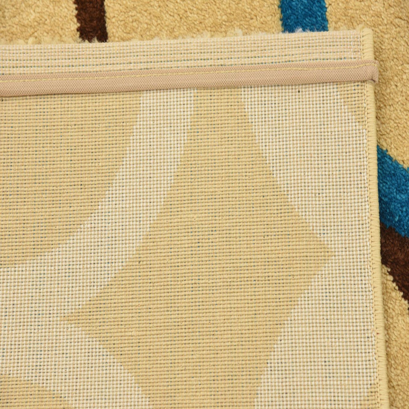 Primary color is Tan. Colors in this rug include: Tan, Brown, Blue, Beige.