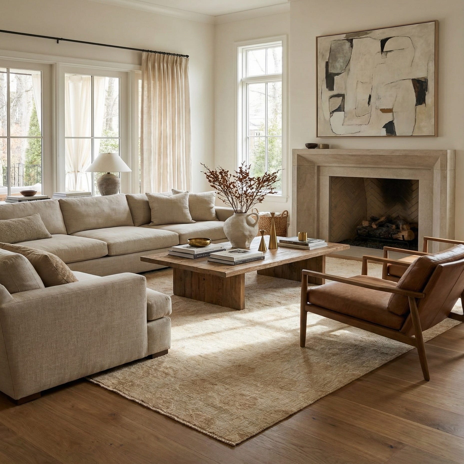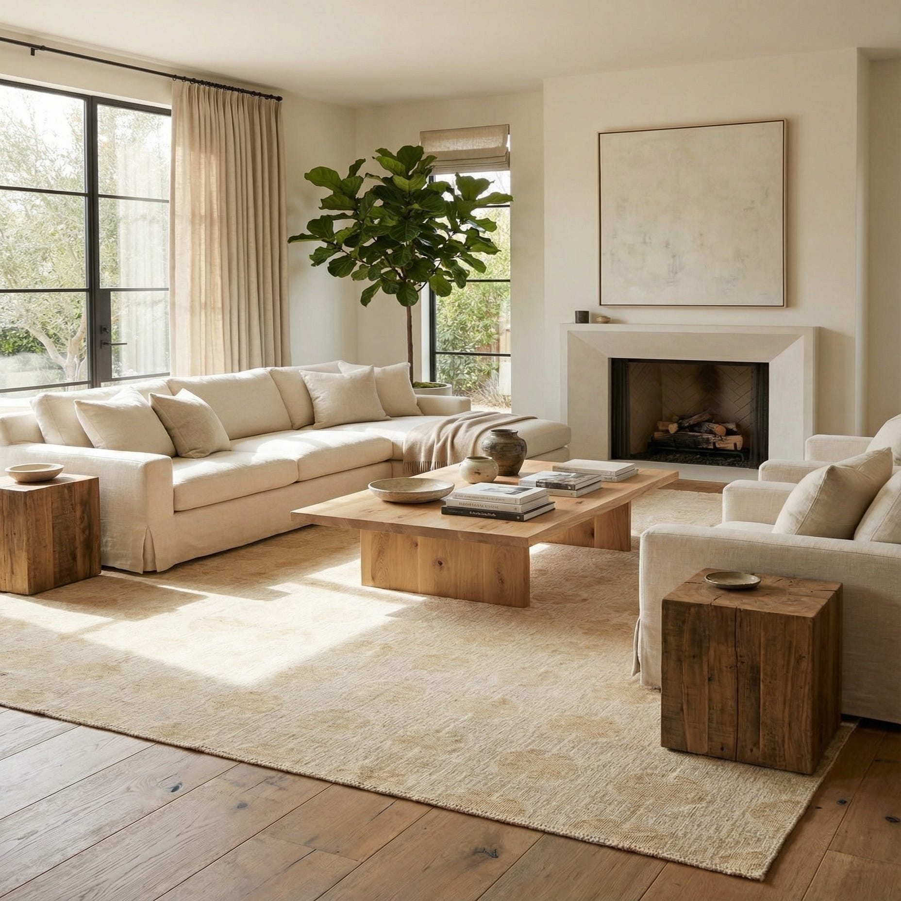 This rug would seamlessly integrate into minimalist, Scandivanian, or modern farmhouse interiors due to its clean color scheme and simple pattern. It can serve as a grounding element in a living room, under a dining table, or anchor a bedroom suite, adding a layer of warmth and sophistication. The Darya rug is well-suited for spaces that aim to achieve a serene and inviting atmosphere with a nod to traditional design elements.