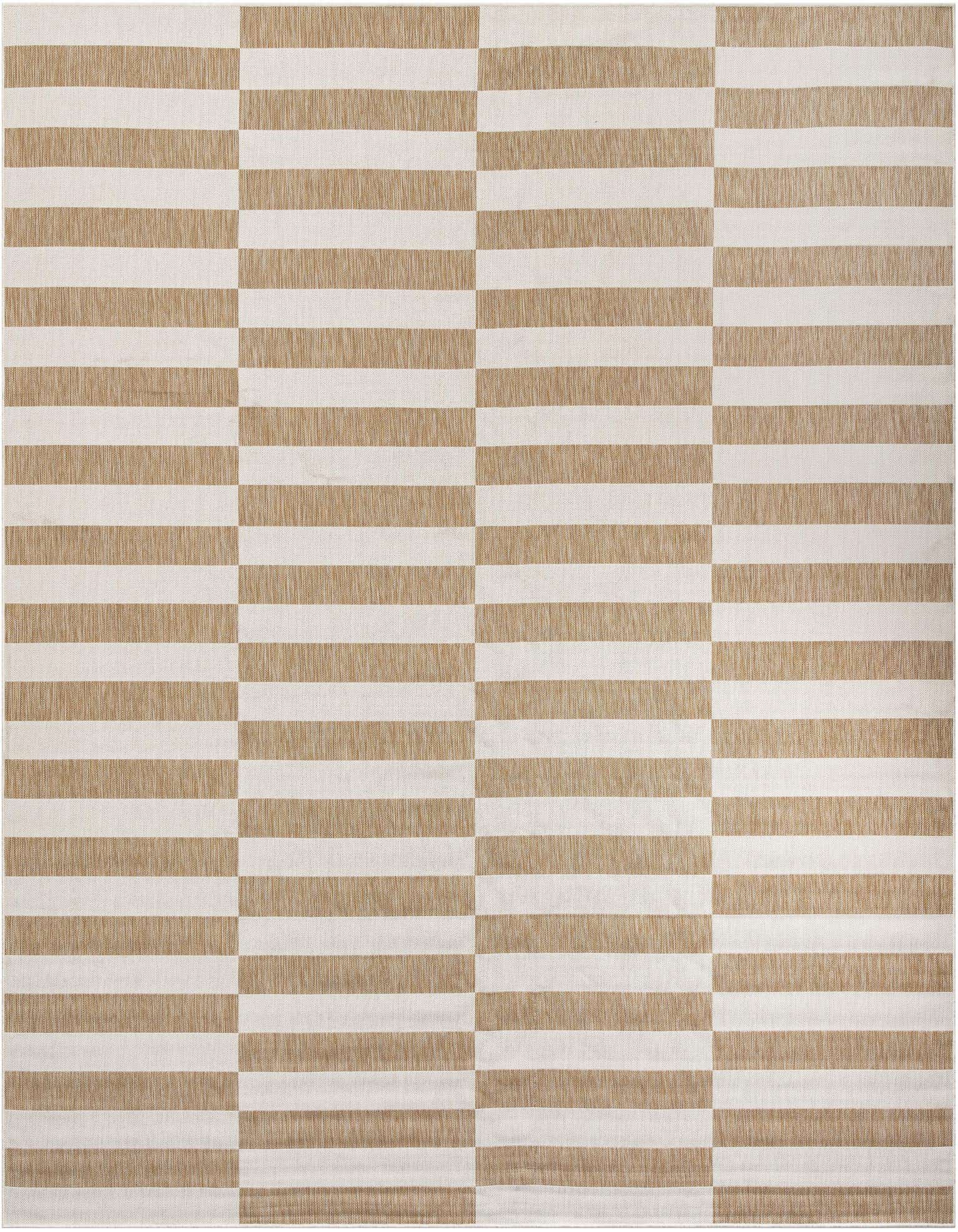 In terms of decor scenarios, this rug complements contemporary outdoor living spaces, such as patios, decks, or poolside areas. Its neutral palette integrates seamlessly with a variety of outdoor furniture materials, from natural wood to modern metal finishes. Inside the home, it can function beautifully in sunrooms, casual dining areas, or playrooms where durability and ease of maintenance are priorities. The clean lines and understated hues support minimalist aesthetics but are also flexible enough to blend with more traditional or eclectic designs.