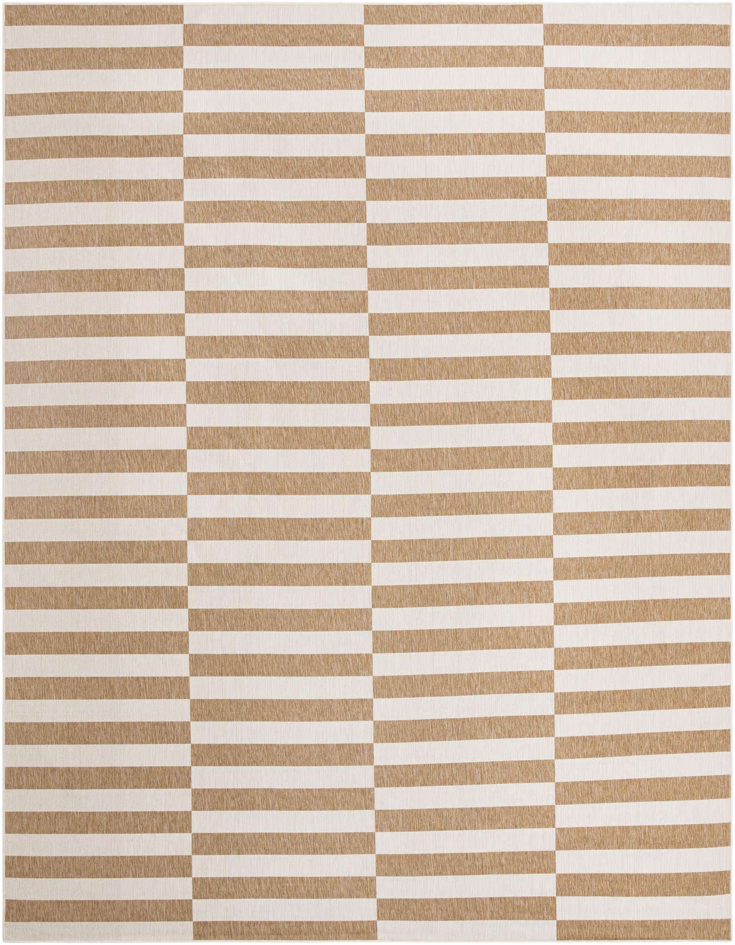 The Outdoor Ribbon Collection rug, measuring 12x16, presents a simple yet engaging pattern with a distinct contemporary flair. This piece is constructed from 100% polypropylene, known for its durability and resilience against the elements. The taupe background is harmoniously accentuated by ivory stripes, creating an inviting contrast and rhythmic design.