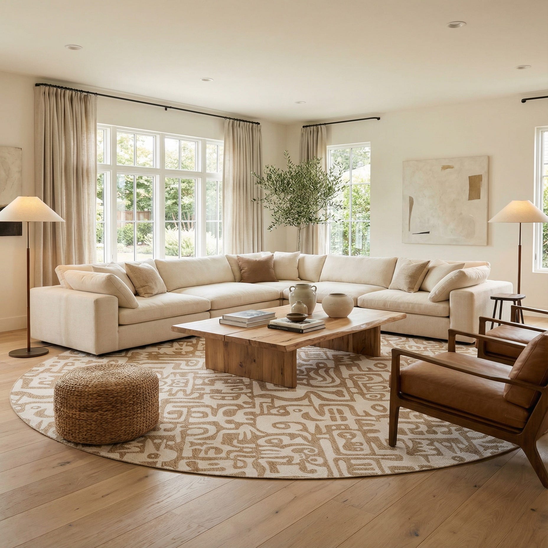 Use this rug to anchor a covered patio or sunroom seating area, place it beneath a round dining table for a casual al fresco feel, or set it under a bistro grouping by the poolside. It pairs well with natural woods and woven furniture, linen cushions and throws, and clean-lined metal or rattan accents—an easy choice for modern, coastal, mid-century inspired, or relaxed contemporary settings.