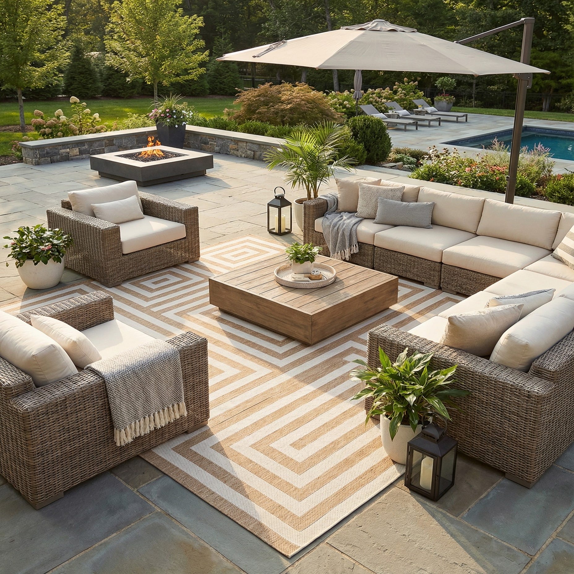 This outdoor-ready piece works well on a covered patio or sunroom as a grounding layer, and it also transitions indoors to anchor a contemporary living room, dining area, or minimalist home office. Pair it with natural wood furniture and woven accents for a relaxed coastal-modern look, or place it beneath a glass-top table and metal-framed seating to reinforce a clean, urban aesthetic.