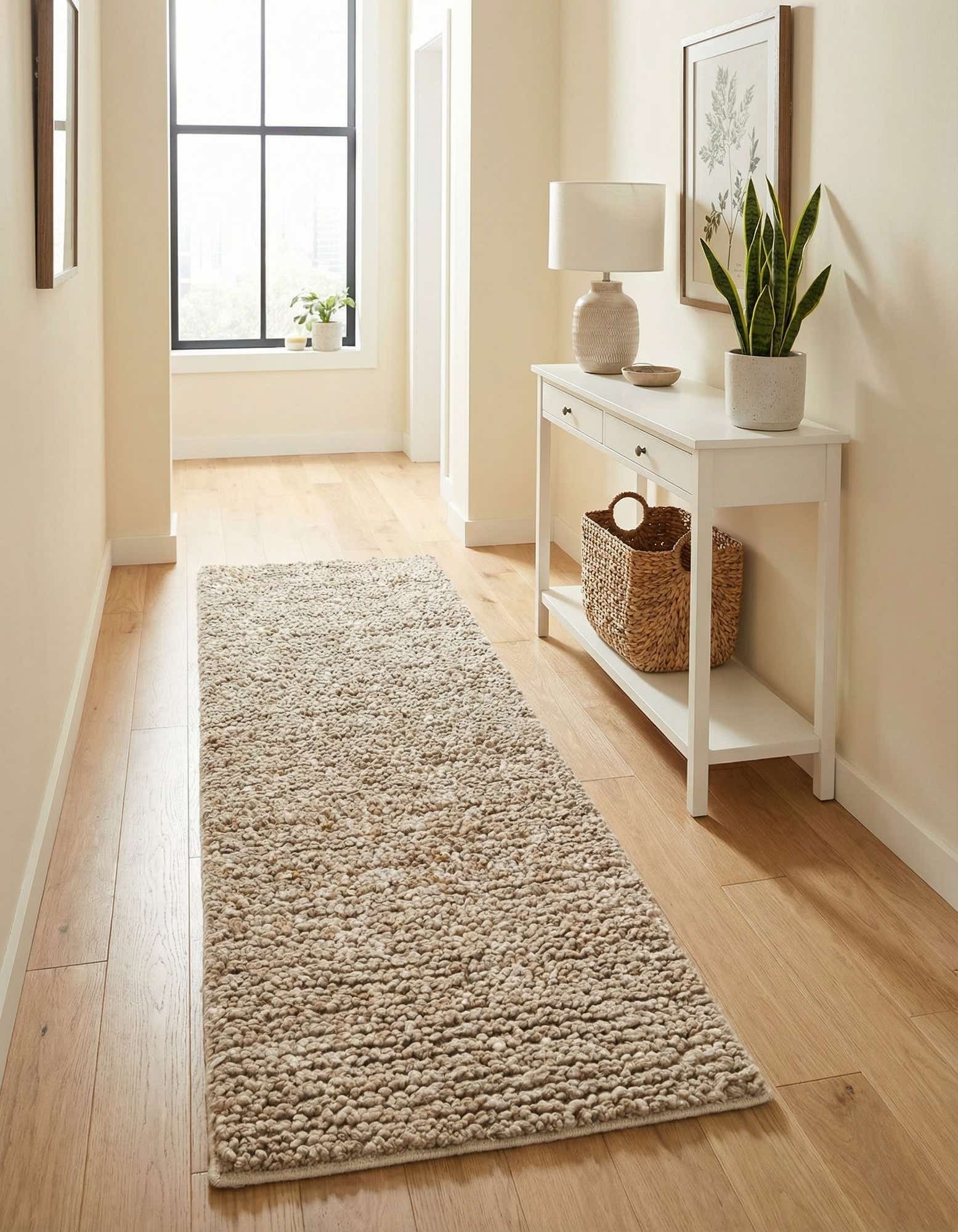 Primary color is Taupe. Colors in this rug include: Taupe, Ivory.