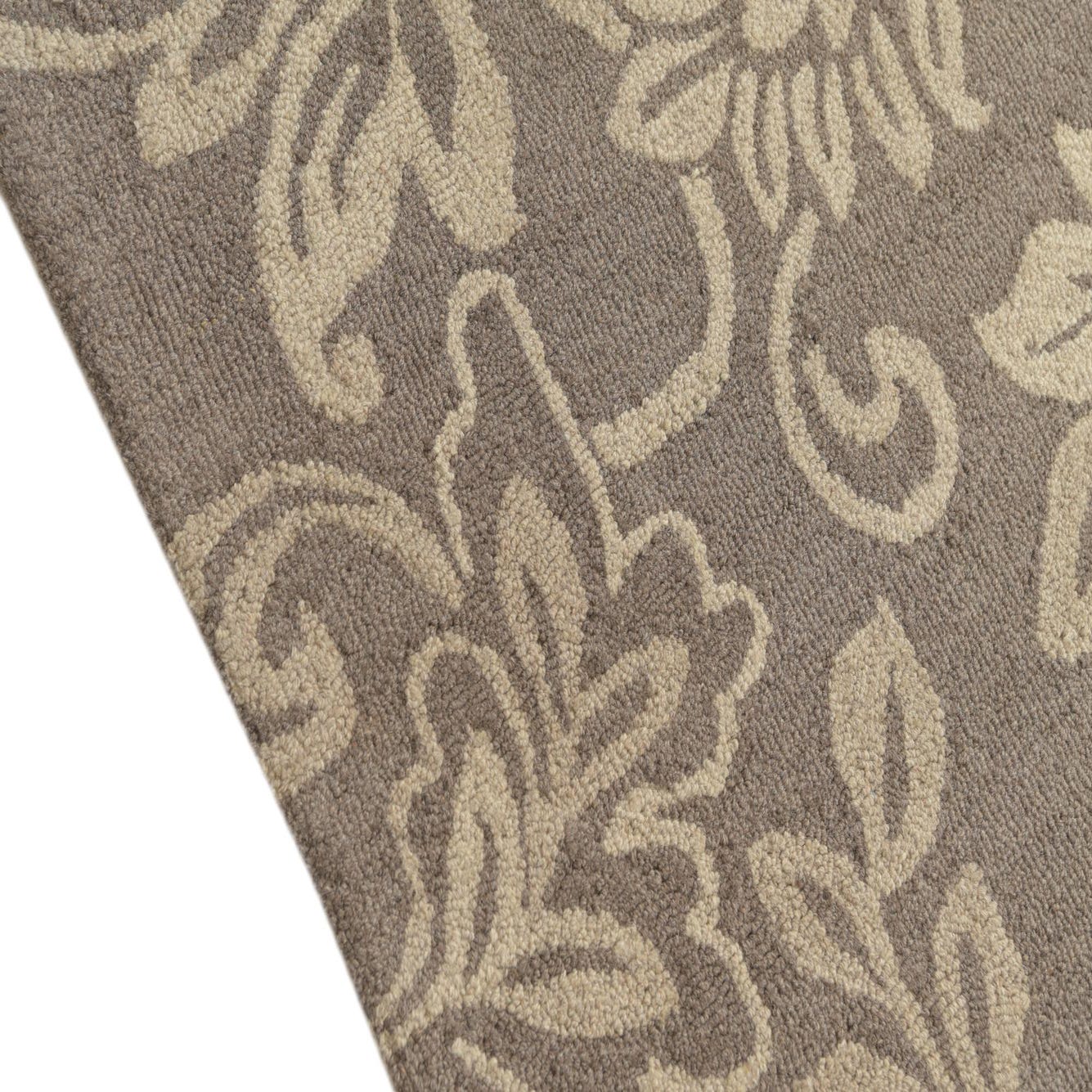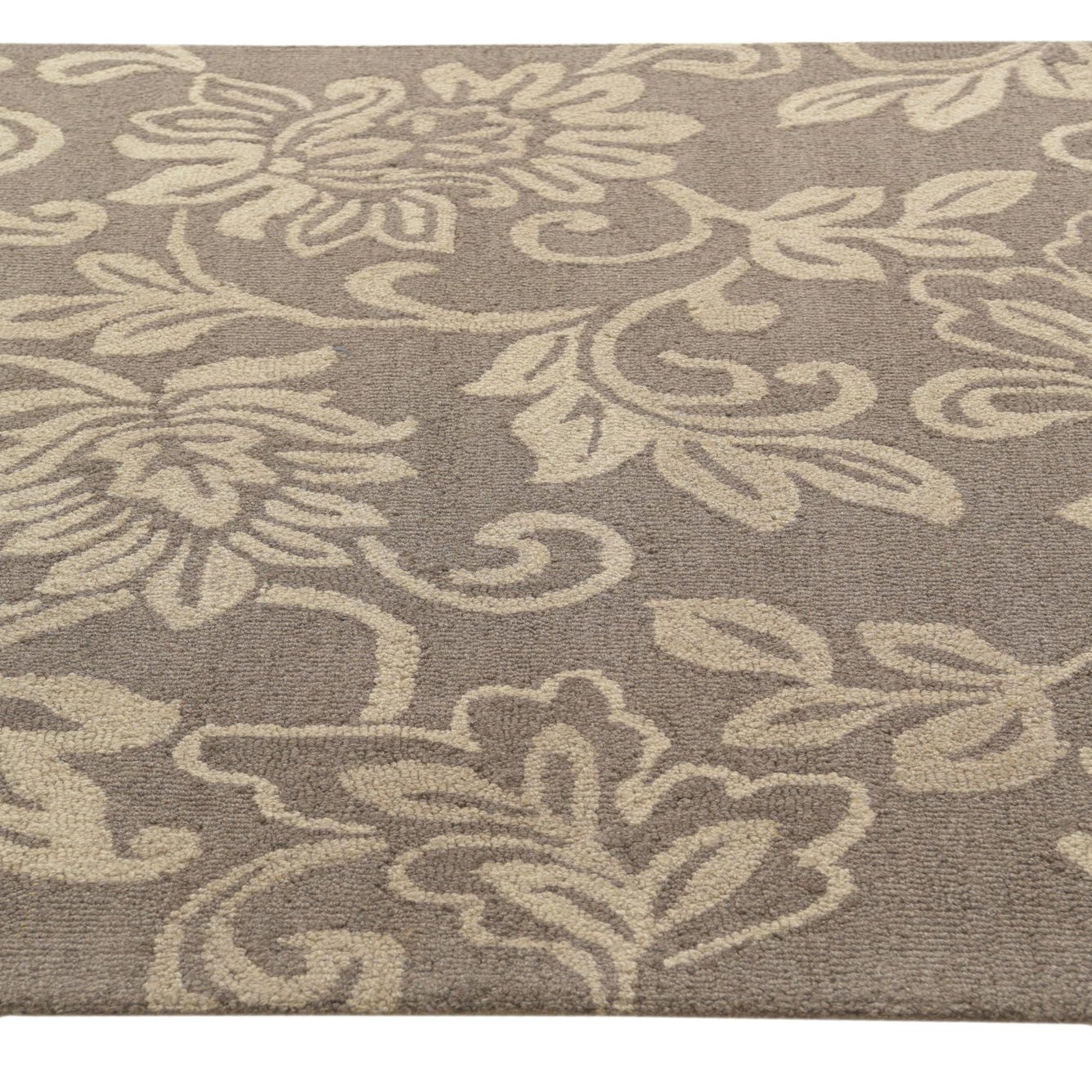 The Agra collection presents a refined 5x8 hand-tufted rug crafted from 100% wool, revealing the timeless elegance of traditional styling. This piece features an intricate floral pattern, gracefully unfolding across a taupe background while ivory accents enhance the design's dimension and visual interest. The earthy taupe and soothing ivory color palette contributes to a serene and sophisticated appearance.