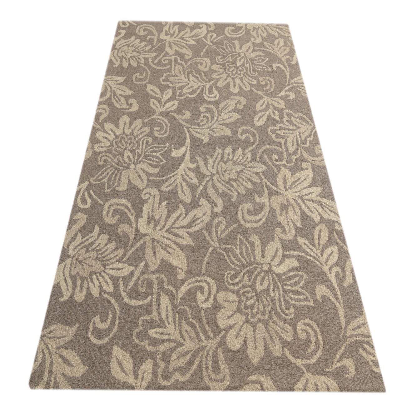 Primary color is Taupe. Colors in this rug include: Taupe, Ivory.