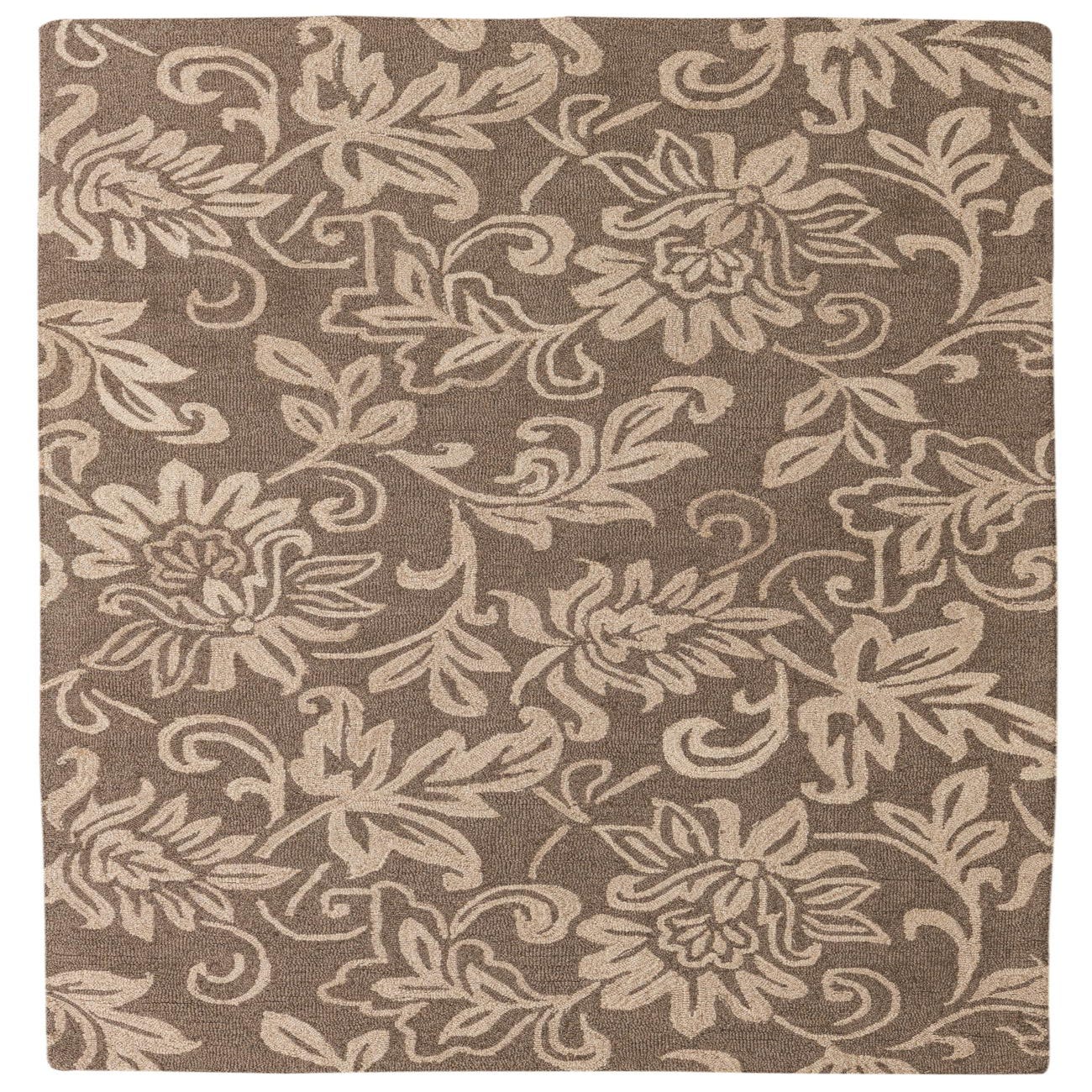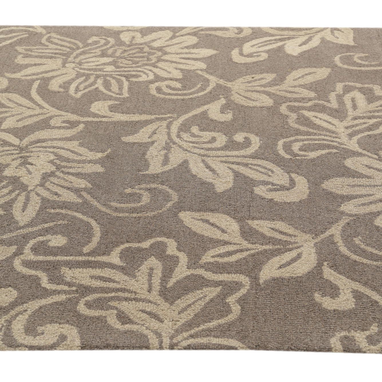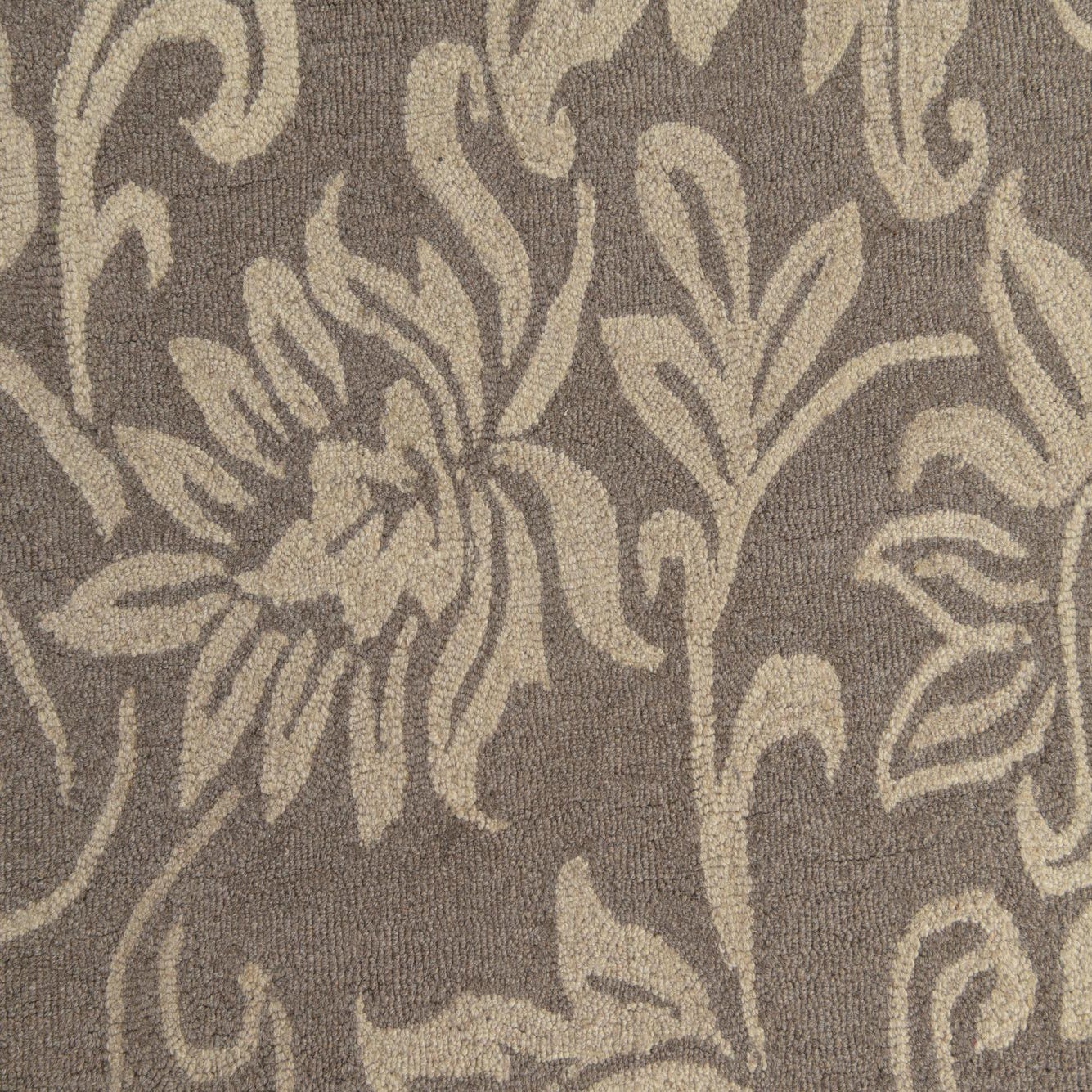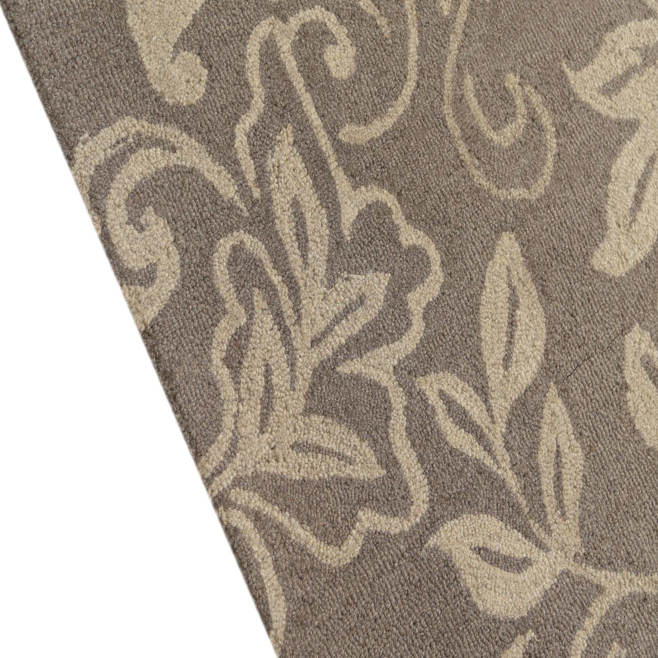 The Agra collection presents a 5x8 hand-tufted rug, meticulously crafted from 100% wool for a plush, textured underfoot experience. This piece showcases a graceful floral pattern that elegantly intertwines across a taupe background, with ivory accents creating a delicate contrast. The defined yet soft pile exhibits a subtle luster that gently captures the light, enhancing the depth and dimension of the design.