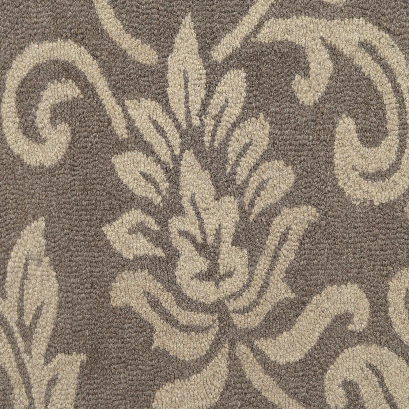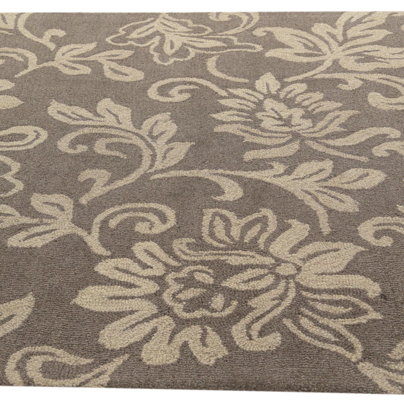 The Agra Collection offers a hand-tufted rug crafted from 100% wool, presenting durability and a soft underfoot experience. This 5x8 rug showcases an elegant floral pattern with sweeping, stylized motifs, a quintessential feature for classic design schemes. The color palette is comprised of a taupe background with contrasting ivory accents, offering a neutral yet sophisticated anchor for a multitude of interior spaces.