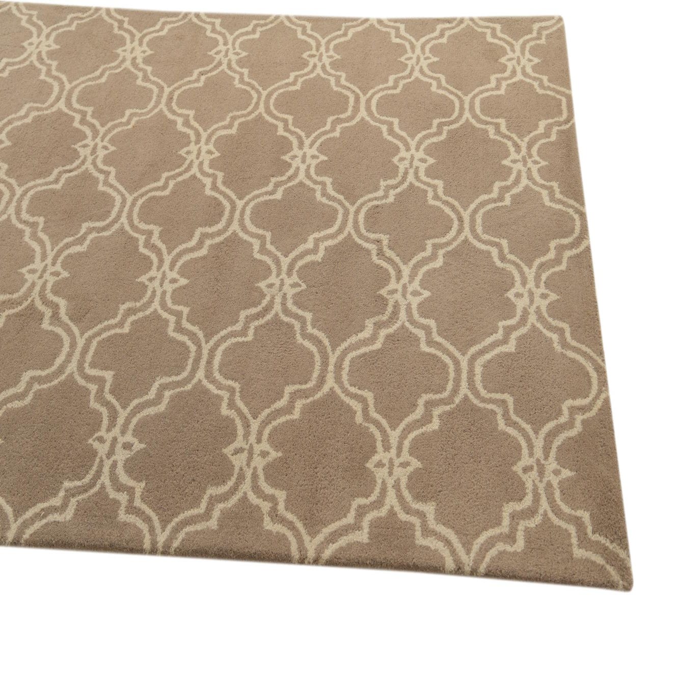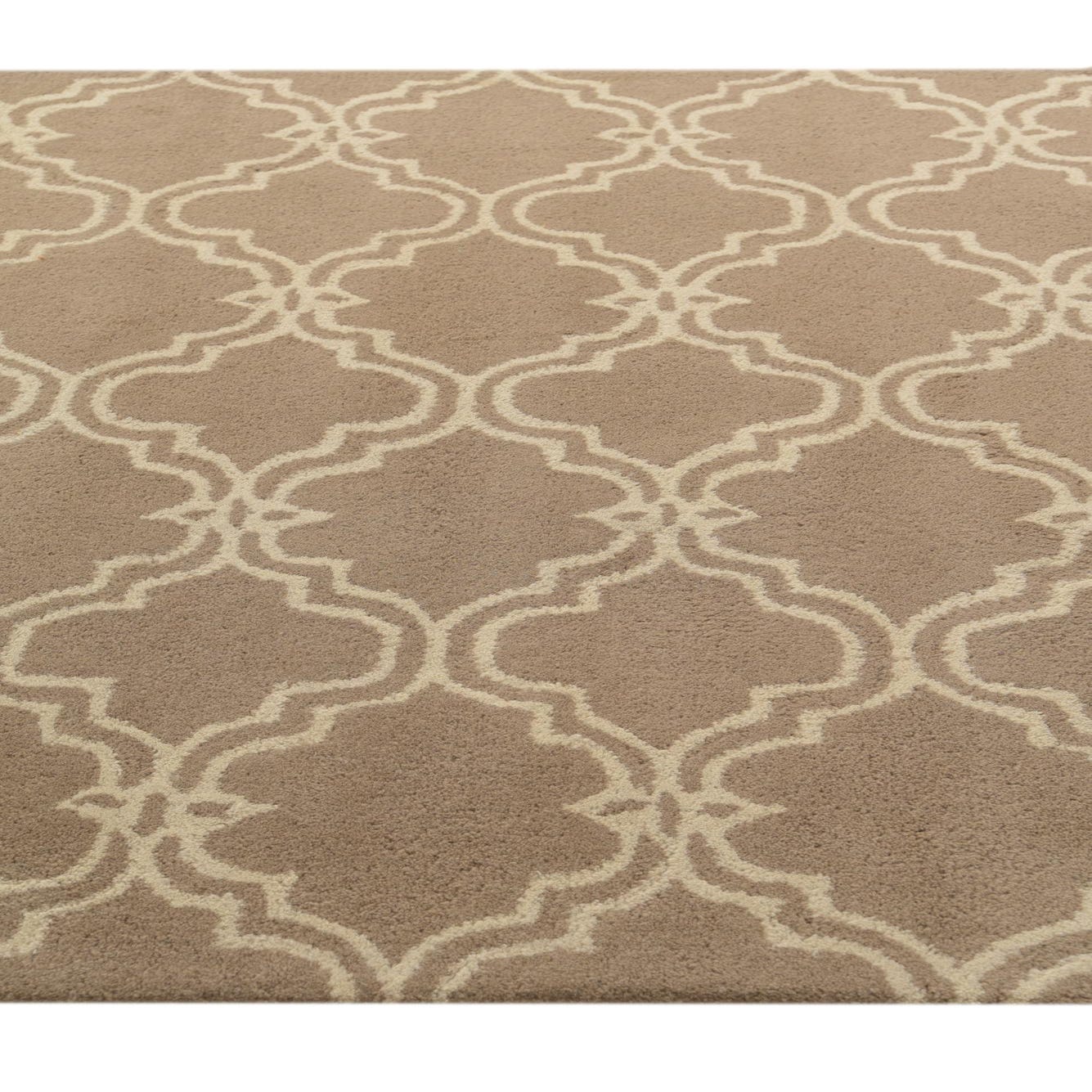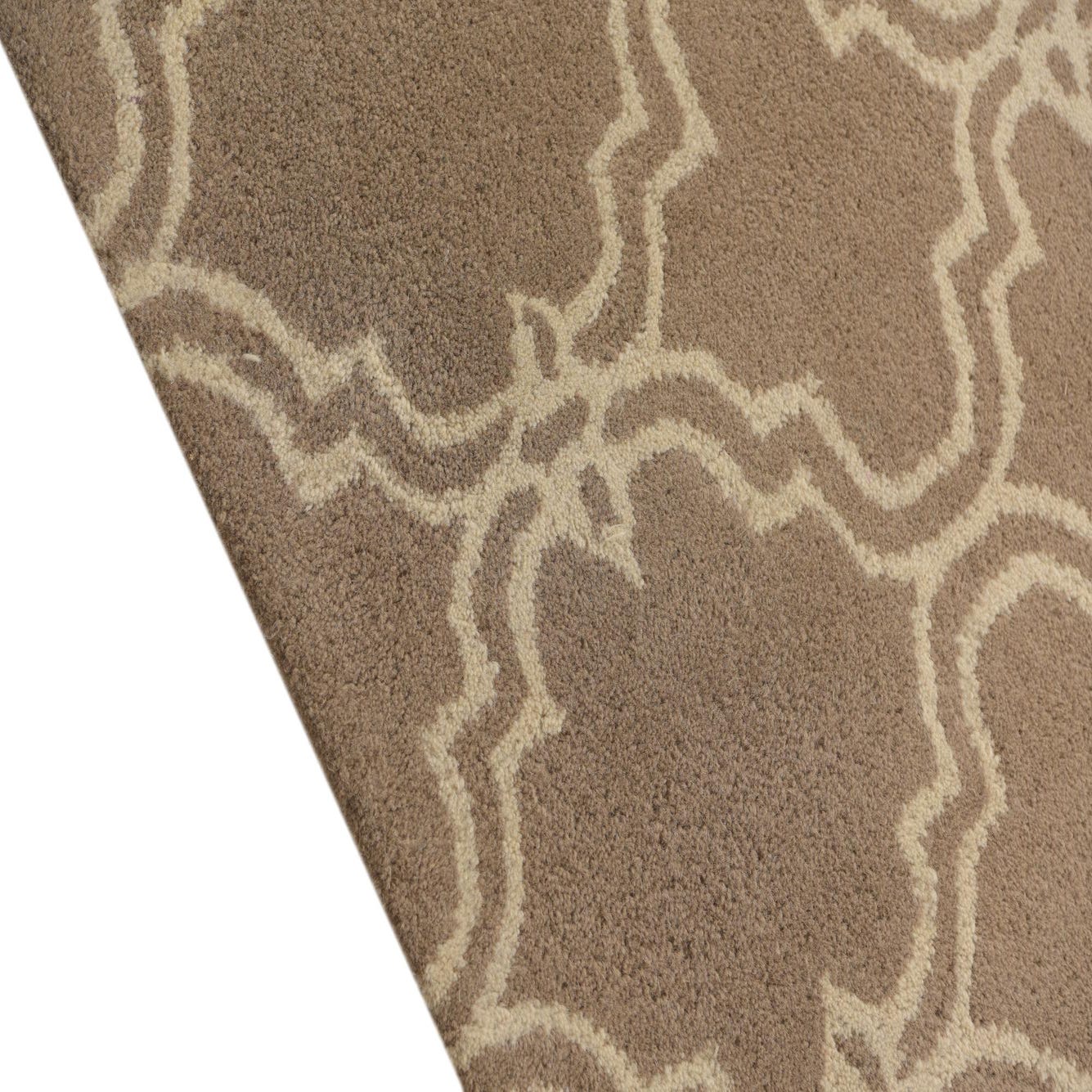 The Luna Collection rug showcases a graceful interlocking pattern in a soothing taupe background paired with contrasting ivory motifs. Woven from 100% wool, this hand-tufted 5x8 asset offers a pleasing tactile experience underfoot. The medium-pile construction balances comfort and practicality, making it suitable for moderate traffic areas.