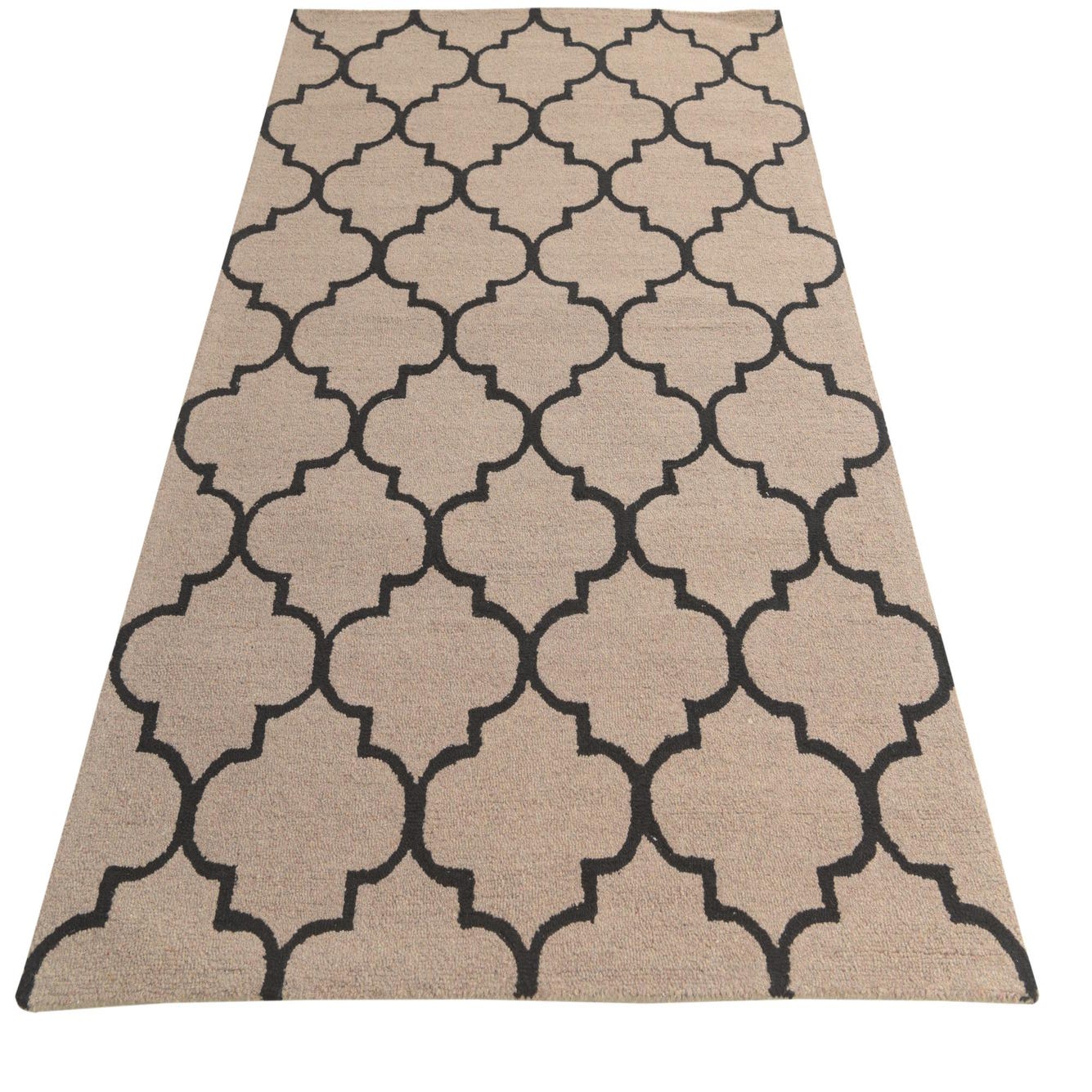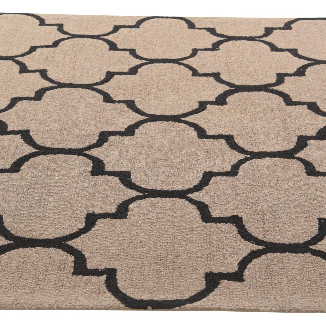 Primary color is Taupe. Colors in this rug include: Taupe, Black.