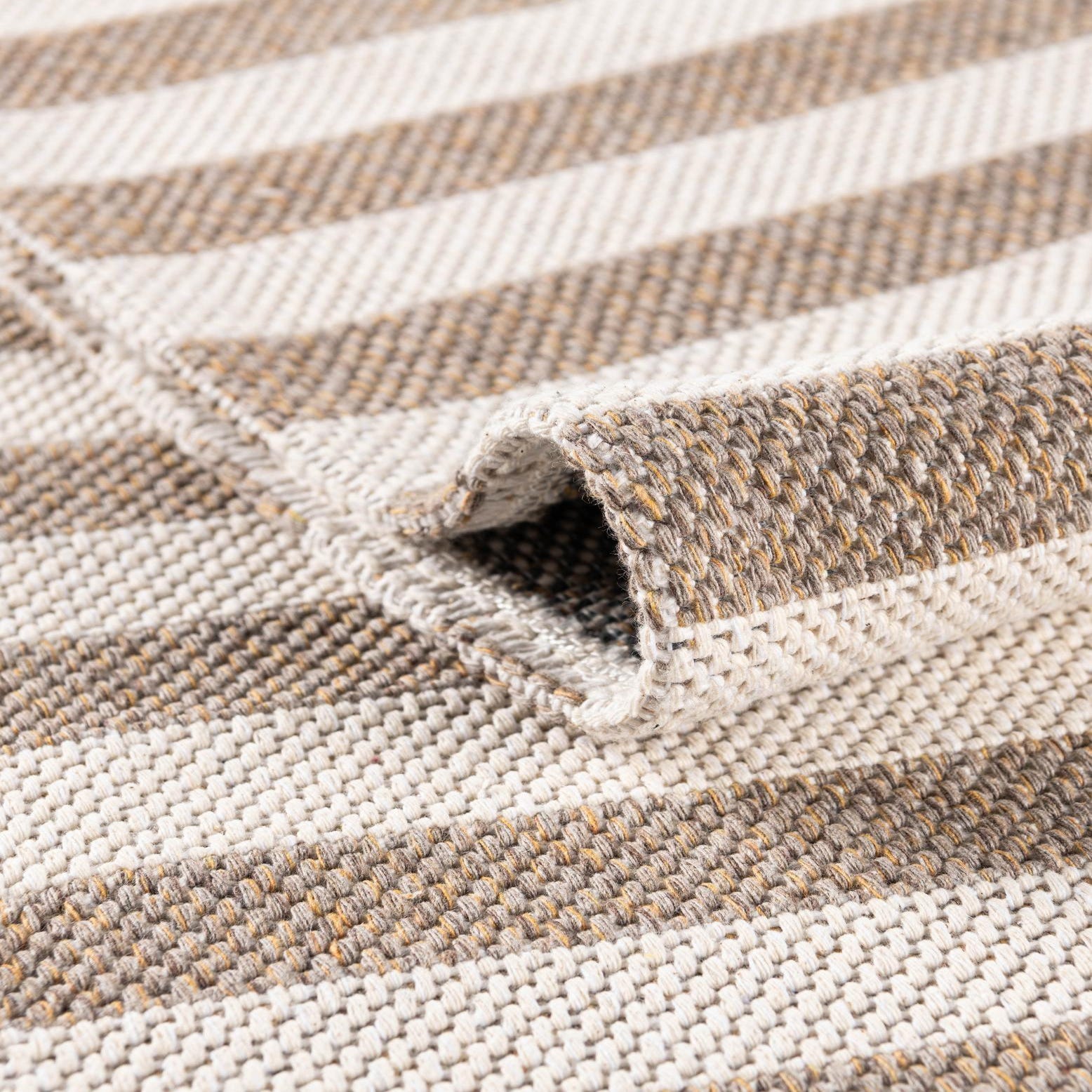 The Georgia Collection presents a modern runner rug with a balanced taupe and ivory stripe pattern that confidently anchors any space it inhabits. With 6 feet in length, this piece exhibits a thoughtful design that complements both contemporary and classic interiors. The machine-woven construction affords durability, while the 100% cotton fabrication enhances the tactile experience with a soft, inviting texture.