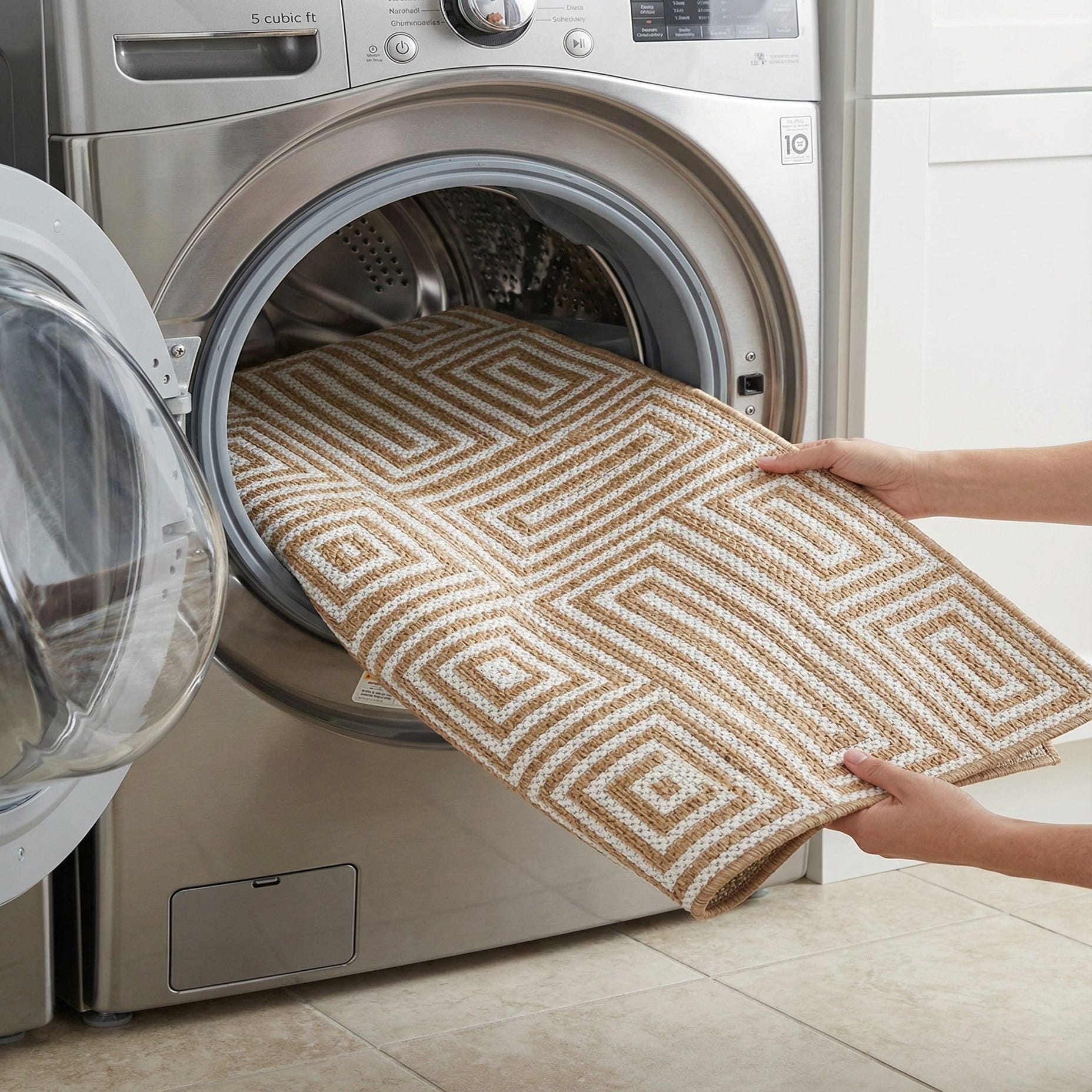 Machine made of 100% polypropylene, this runner is practical for spaces where you want structure without heaviness. It works well on a covered porch or balcony, down a kitchen or hallway, or layered in a sunroom. Pair it with natural woods, rattan, linen upholstery, and simple metal accents for a relaxed contemporary, coastal, or transitional setting that emphasizes clean lines and neutral warmth.